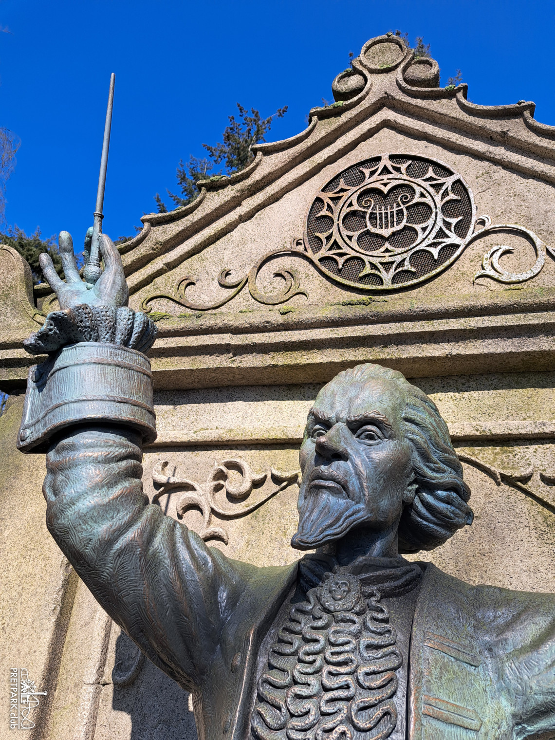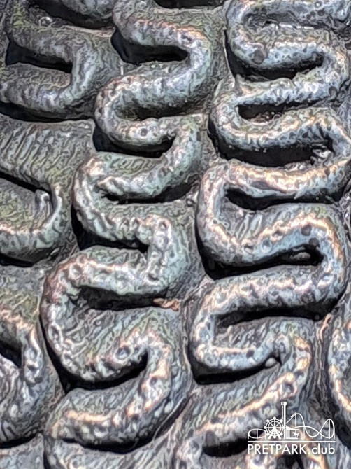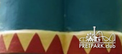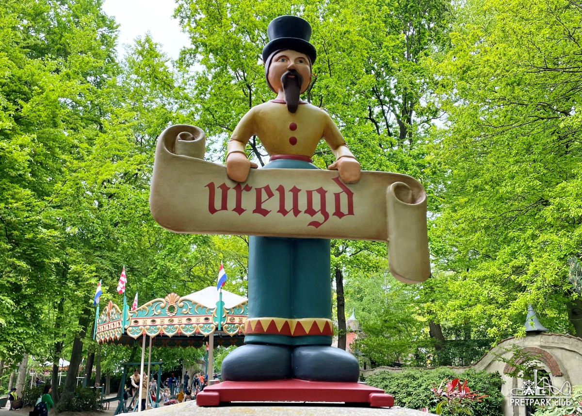 gjee De benen van het mannetje op de poort van Kindervreugd, hij draagt de vaandel met het woordje vreugd.