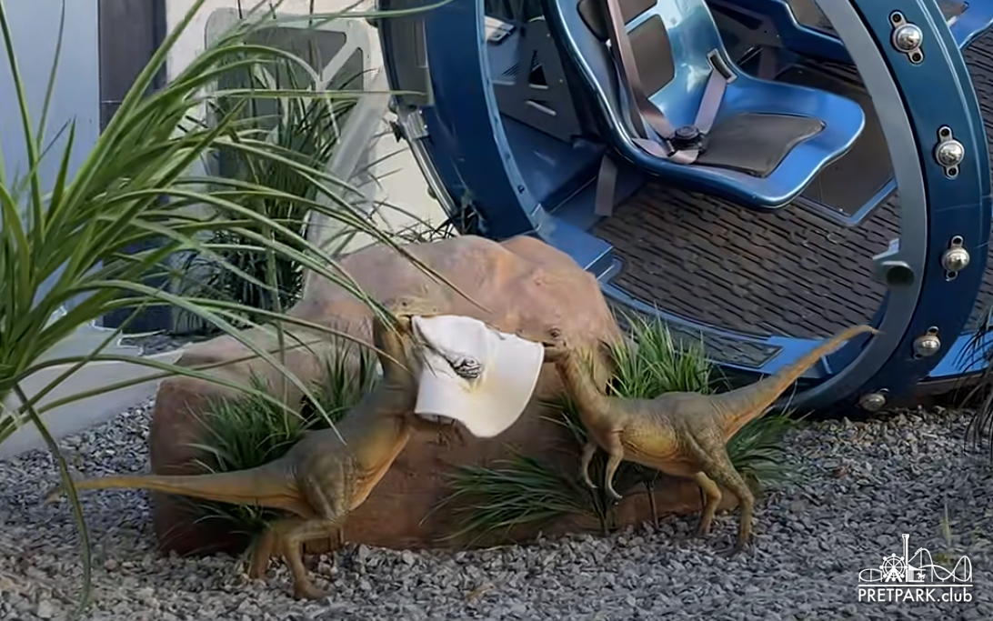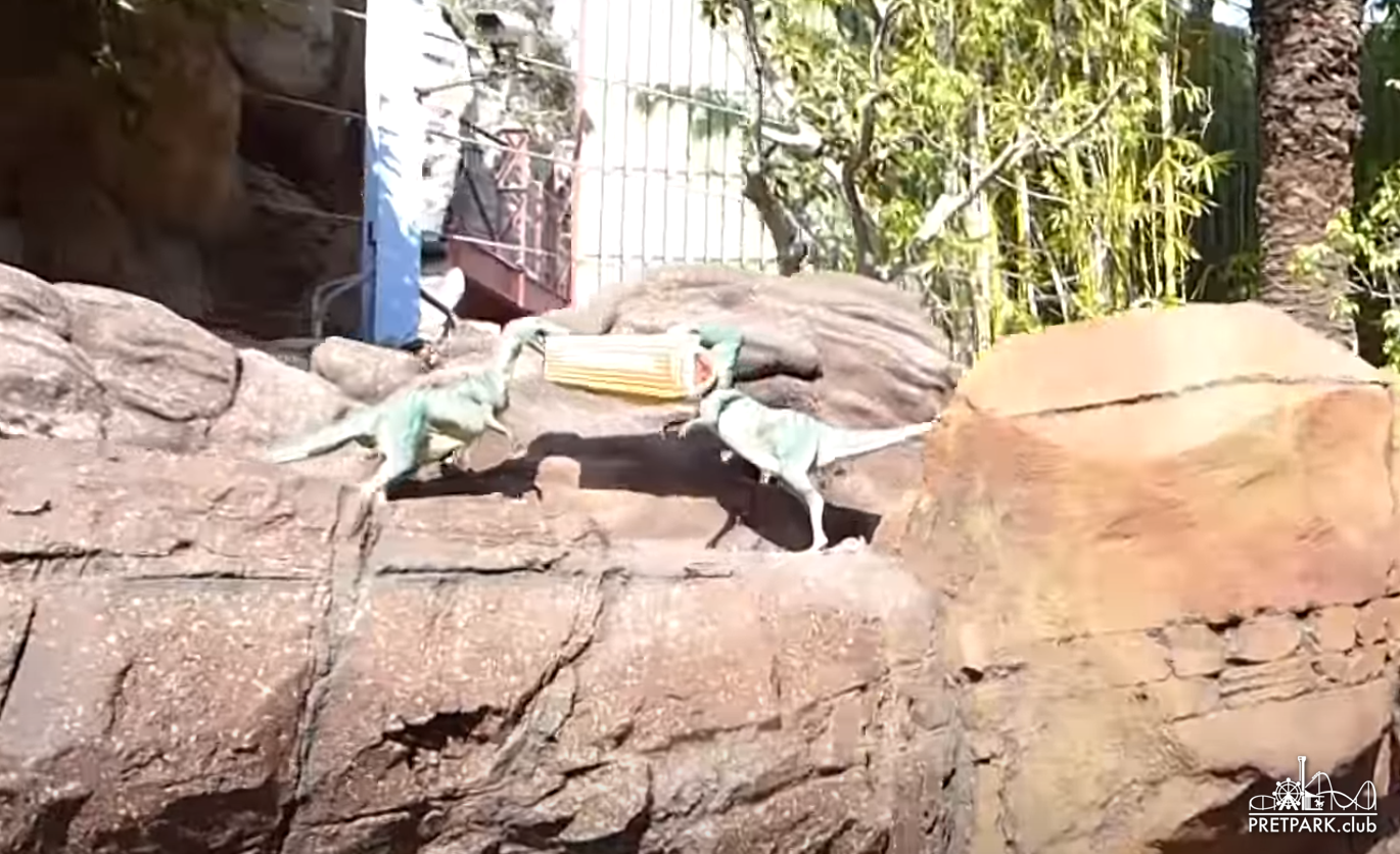Eens en oneens, de kleine dino's bewegen ook gewoon discutabel, je ziet dat er enorm veel van de oude attractie is hergebruikt en het lijkt erop dat er bij dit hergebruik geen verfijning in de intussen 25 jaar oude technieken is toegepast.