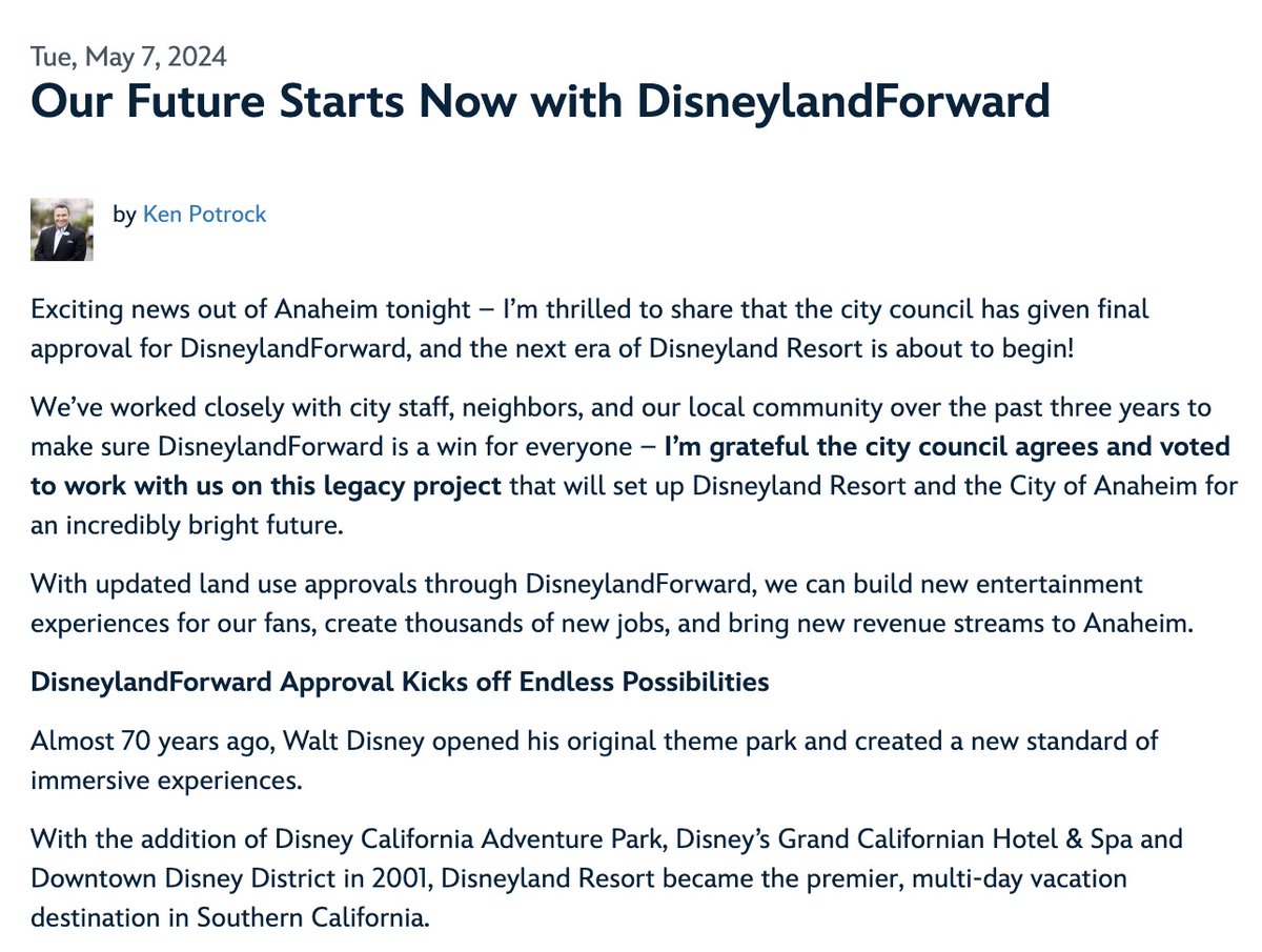 Dit is voor alle duidelijk niet het eerder in dit topic vermeldde Disneyland Forward project want dat zou aan de andere kant van het resort gaan plaatsvinden.
