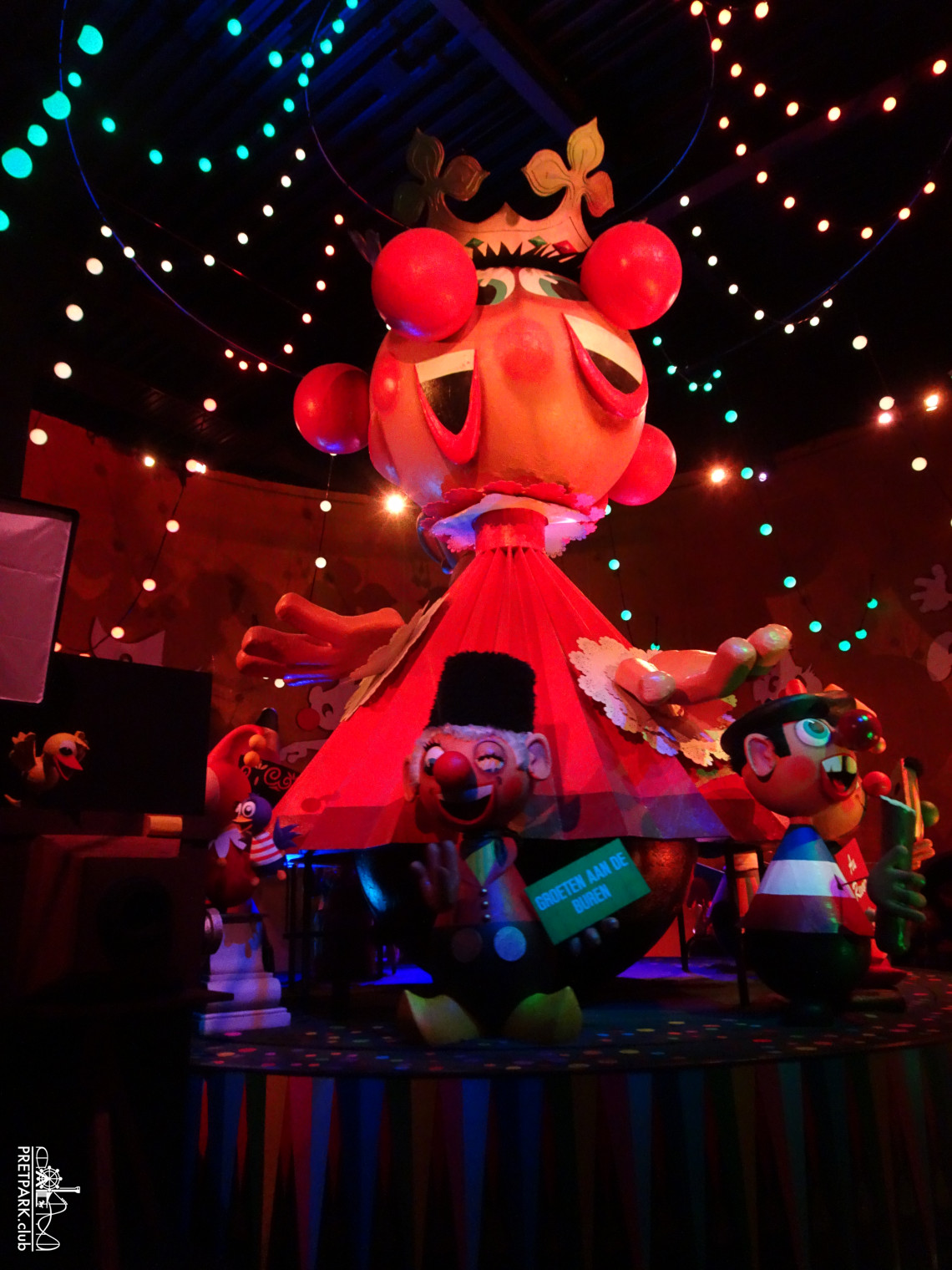 Wat ik ook het fijne vind van de Efteling zijn de Rijken, de pleinen die het park rijk is. Niet de standaard western, science fiction en dergelijke thema's. Dat maakt de Efteling uniek in zijn soort, zijn klasse. En hoe gek het ook klinkt, maar zou van de Efteling geen seizoenkaart willen hebben, dan gaat de 'magie' er af verwacht ik. Nee, laat mij maar lekker eens á twee keer per jaar gaan, vind ik voldoende. Nu zijn we eenmaal hier neergestreken en Carnaval Festival is aan de beurt. De wachtrij begon buiten al op het plein, maar op één of andere manier eenmaal binnen begon het op te schieten. Ook hier nog geen 20 minuutjes staan wachten. Buurman Vogel Rok werd uiteraard ook niet overgeslagen, waarom als hier het bordje 5 minuten aangeeft?