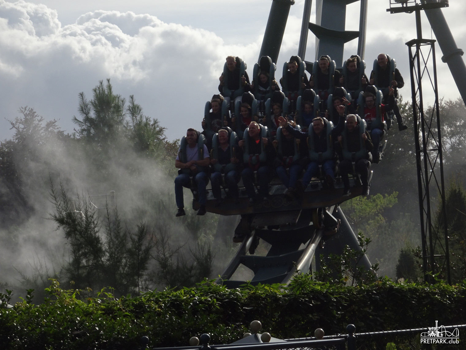 Elke keer bij het verlaten van deze darkride gaat mijn bolleke fantaseren over de mooie B&M flying die hier zo perfect kan gaan passen in hetzelfde thema van de Fata Morgana. Het zal echter bij fantaseren blijven vermoed ik. Via het pad achter de Pirana gingen we naar Joris en de Draak. Ook hier heb ik voor de single riders gekozen en deze liep lekker vlot door. 20 Minuten later stond ik alweer buiten en heb 2 ritten gehad. Ze hadden oer ongeluk denk ik een trein te vlug laten starten terwijl wij nog in het station stonden. Een valse start werd het omschreven en zodoende een ritje extra. Zat op rij 11 naast een jongetje die er voor de eerste keer in zat. Vond het kei leuk voor hem dat ook hij er meteen 2 kreeg. Pegasus allang weer vergeten, want wat vind ik deze leuk. Niet te hoog, niet te snel, maar veel fun en lekker gaan met dat ding. De Python en de Vliegende Hollander werden vandaag overgeslagen voor een keertje. Nogmaals, voor een prijs van vandaag hoef ik deze niet per sé te doen. Vandaag gingen we bijvoorbeeld Fabula en Spookslot doen. De ene nieuw voor mij, de andere alweer 16 jaar geleden ofzo.