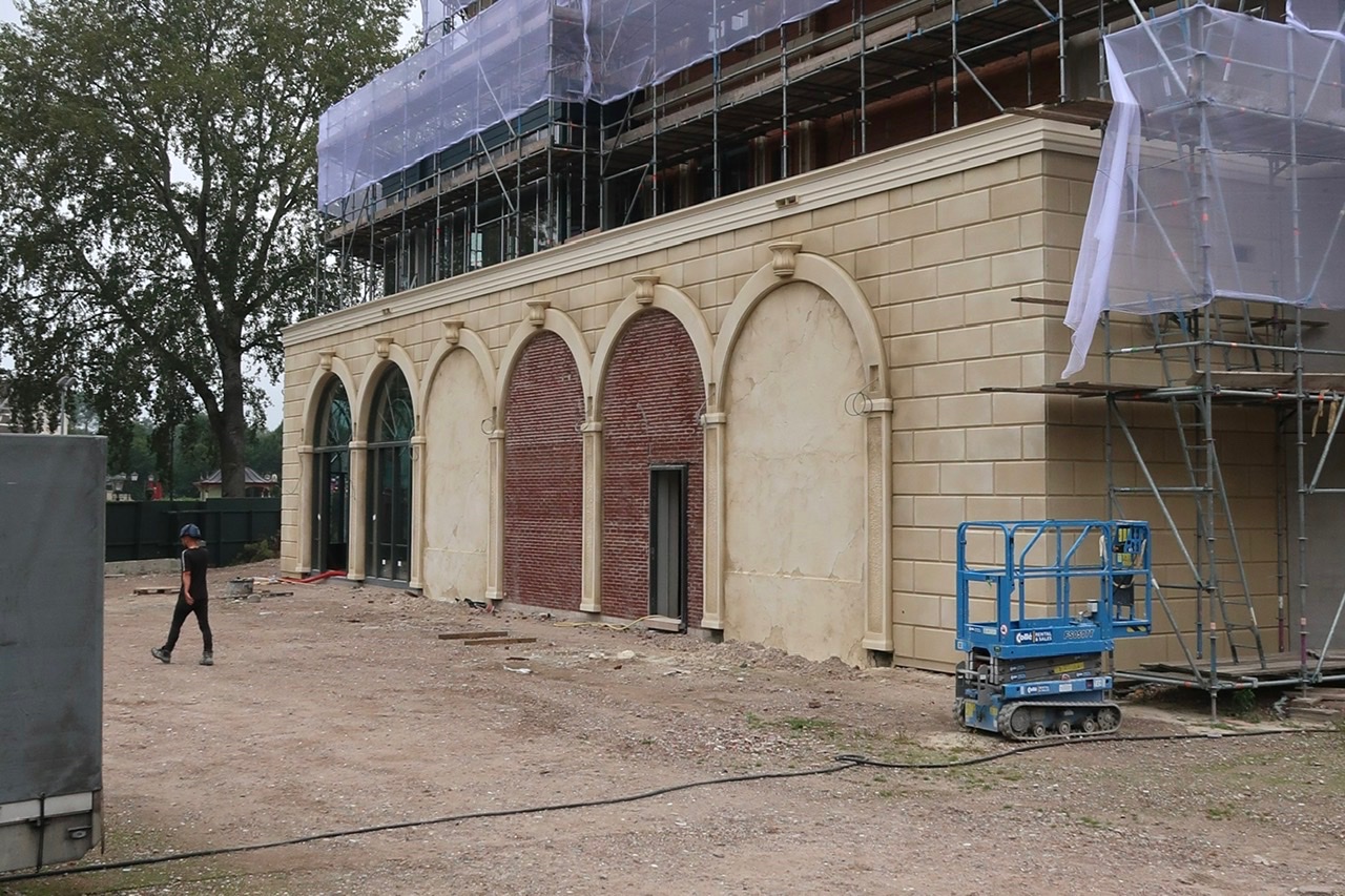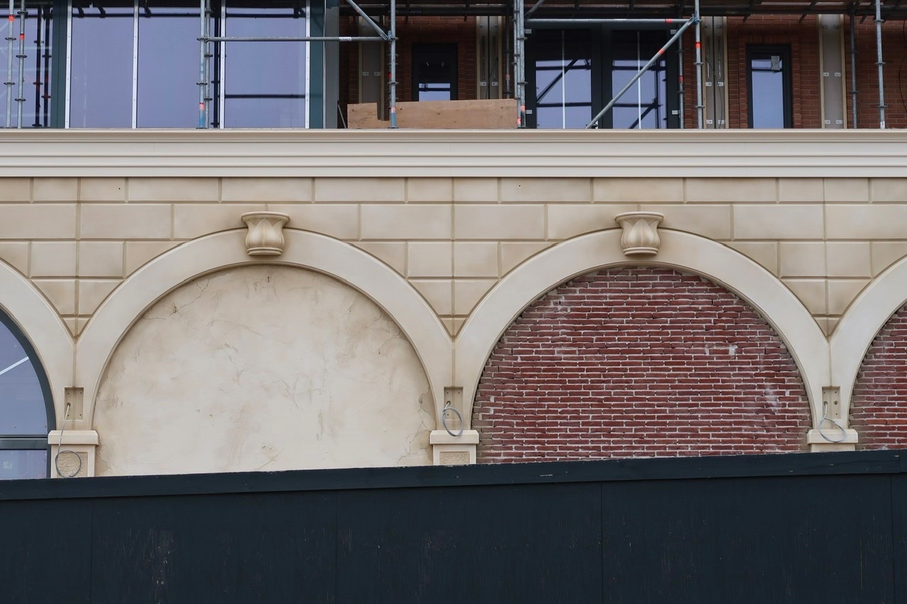 Gelukkig zijn de verticale naden bij de bakstenen delen wel al achter sierranden verdwenen. Ik houd alleen m’n hart vast voor de horizontale naden tussen de bakstenen. Die zouden toch wel gewoon goed weggewerkt kunnen worden met specie ga ik vanuit.