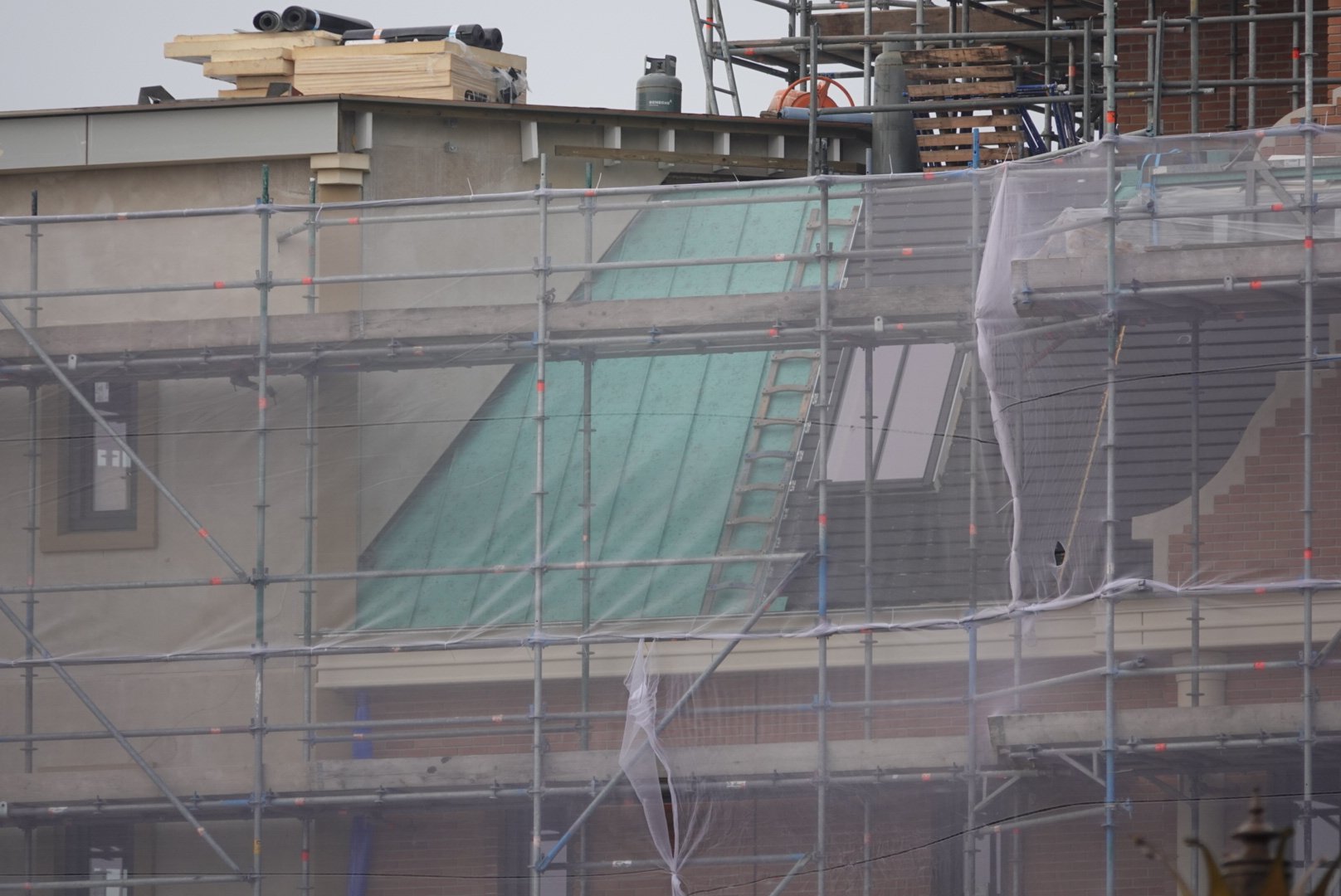 Michael De daken erop geeft het gebouw echt ineens smoel. Toen ik vrijdag aangelopen kwam was het voor het eerst ook eigenlijk wel jammer dat de prominente torens aan de voor- en achterkant zijn geschrapt.