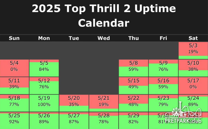 Buiten de geruchten over de treinen die hierboven worden besproken geen slechte uptime voor een ride van het formaat van TTD2. De baan lijkt toch redelijk te draaien.