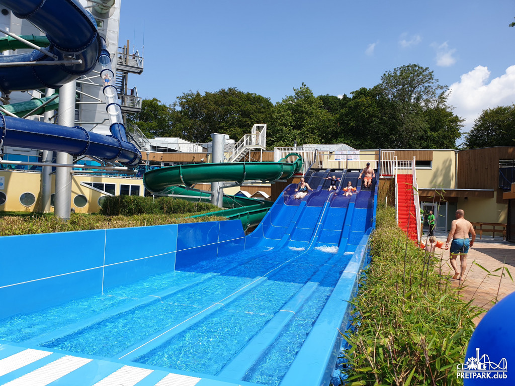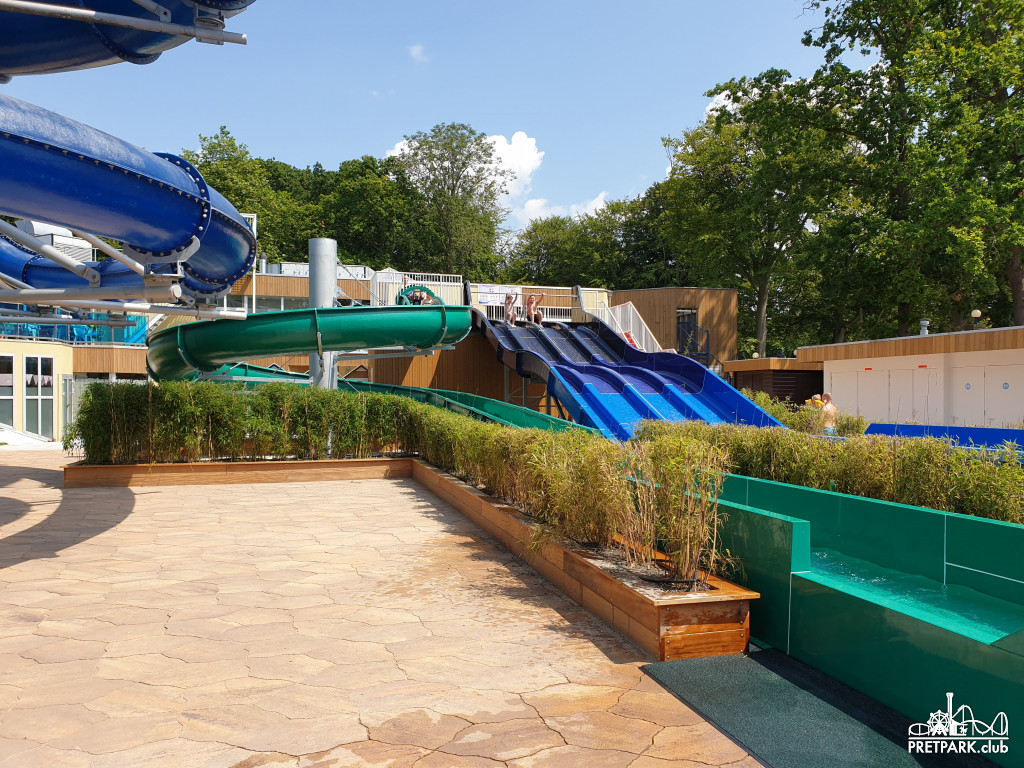 Rechts van dit bad liggen de familieglijbanen, hele fijne banen voor de kleine kinderen, ze kunnen deze banen helemaal zelfstandig doen.