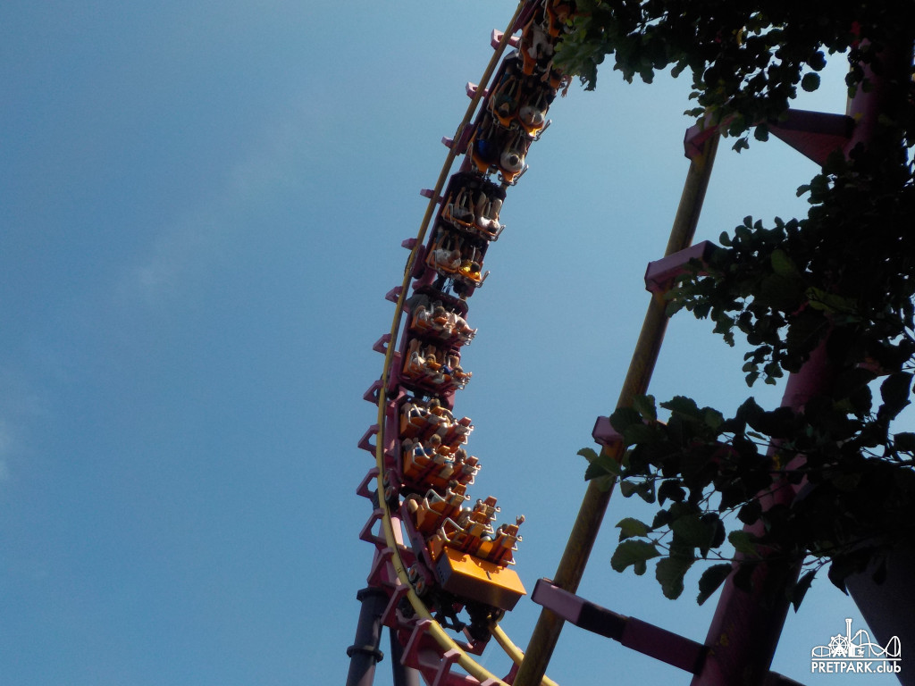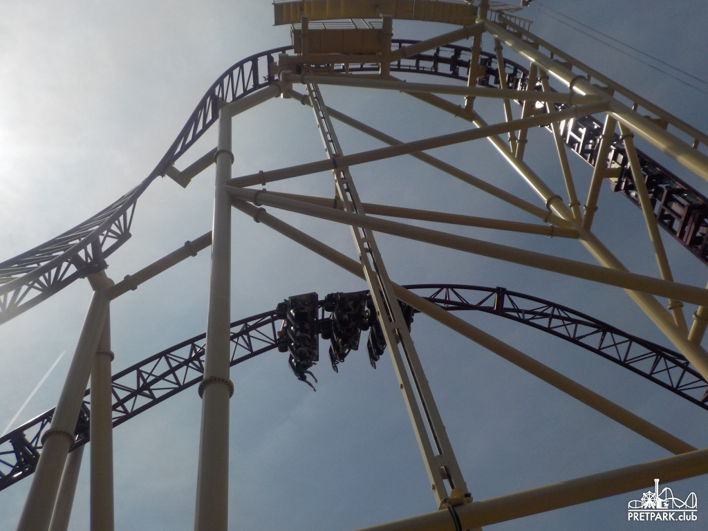 De beugels zitten lekker en je hebt heerlijke hangtime op de stuk voordat je achteruit gaat. Alleen blijf ik geen fan van verticale lifthills.