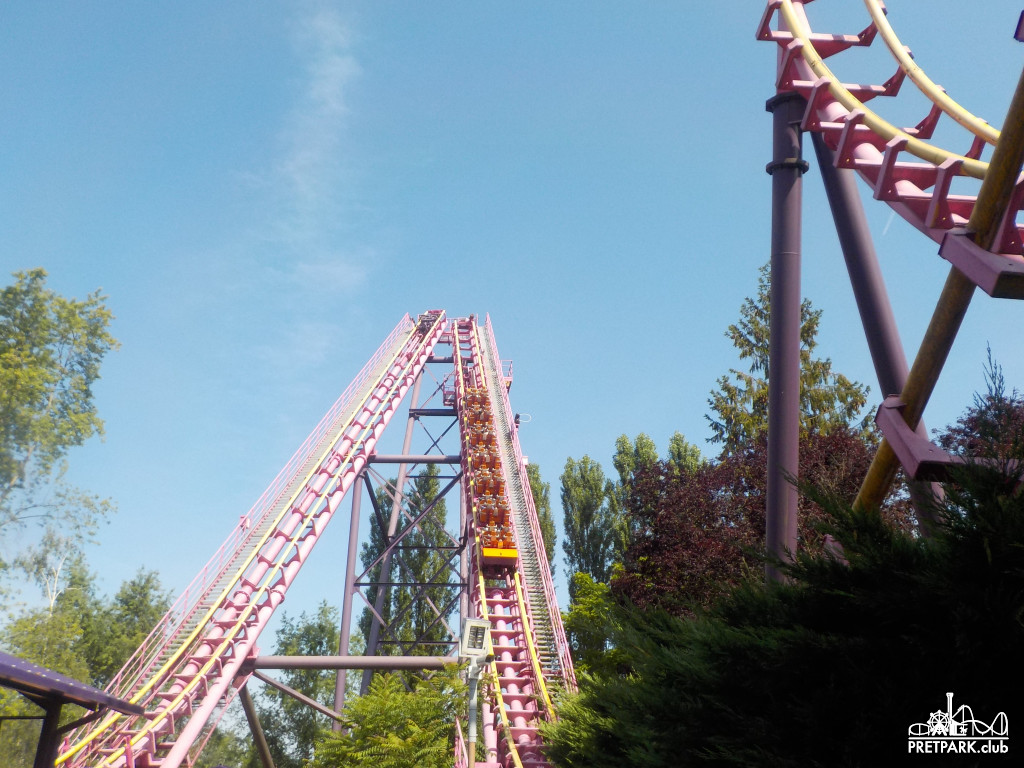 Dan gaat de heerlijke rit beginnen met waar Gerstlauer bekend om staat ten eerste een verticale lift en vervolgens allemaal kronkelingen om vervolgens bij het element uit te komen waar ik