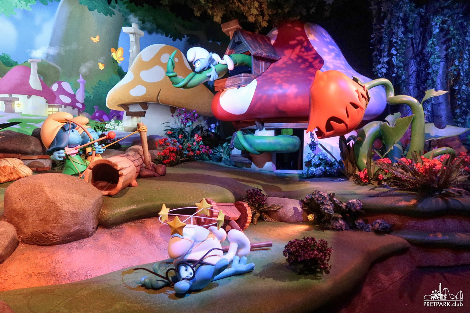 Maar ik heb een zwak voor moderne darkrides, die in basis niet al te duur zijn door materiaalgebruik en relatief simpele animatronics, die met led goed in de verlichting staan, en door de combi van die elementen een strakke uitstraling hebben. Snorri Touren, deze smurfen, Bumba, Abenteuer Atlantis. Even wat voorbeelden van moderne darkrides die deze sfeer opwekken. Ik noem het ‘vrolijk’ ondanks dat het thema dat niet hoeft te zijn. Ik kan ook ‘kleurrijk’ benoemen, terwijl het een donkere darkride kan zijn. Of ‘cartoony’ terwijl de ride niet persé tekenachtig is.