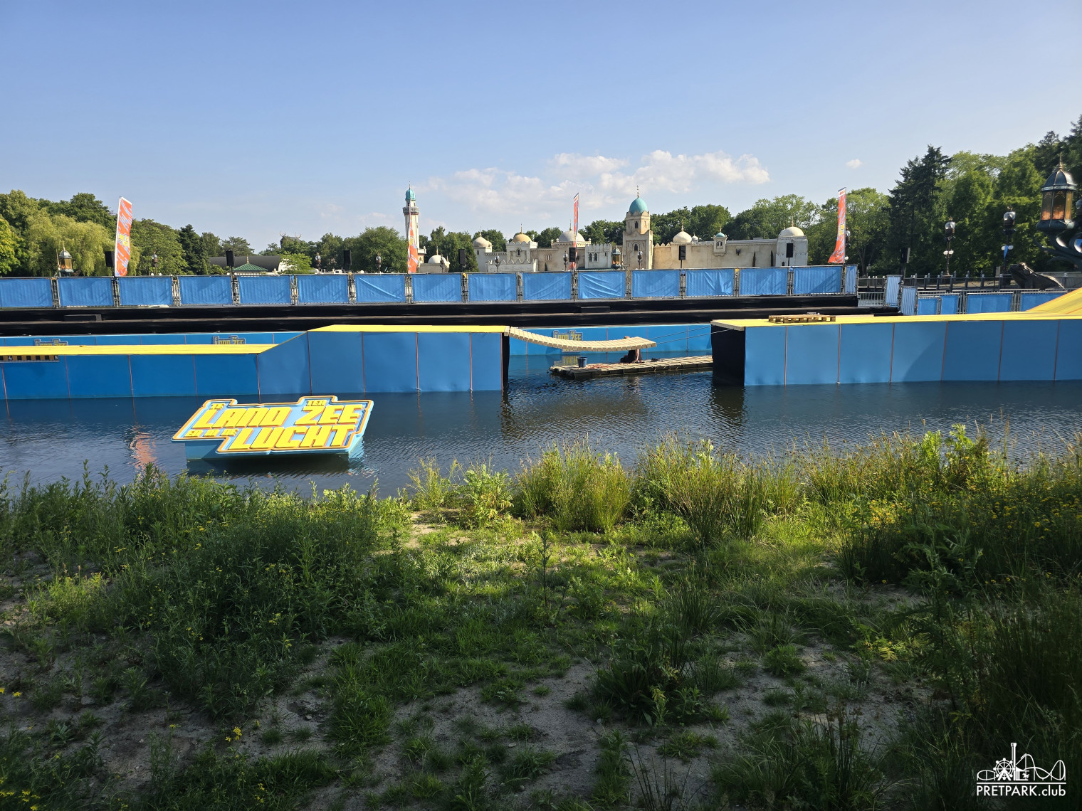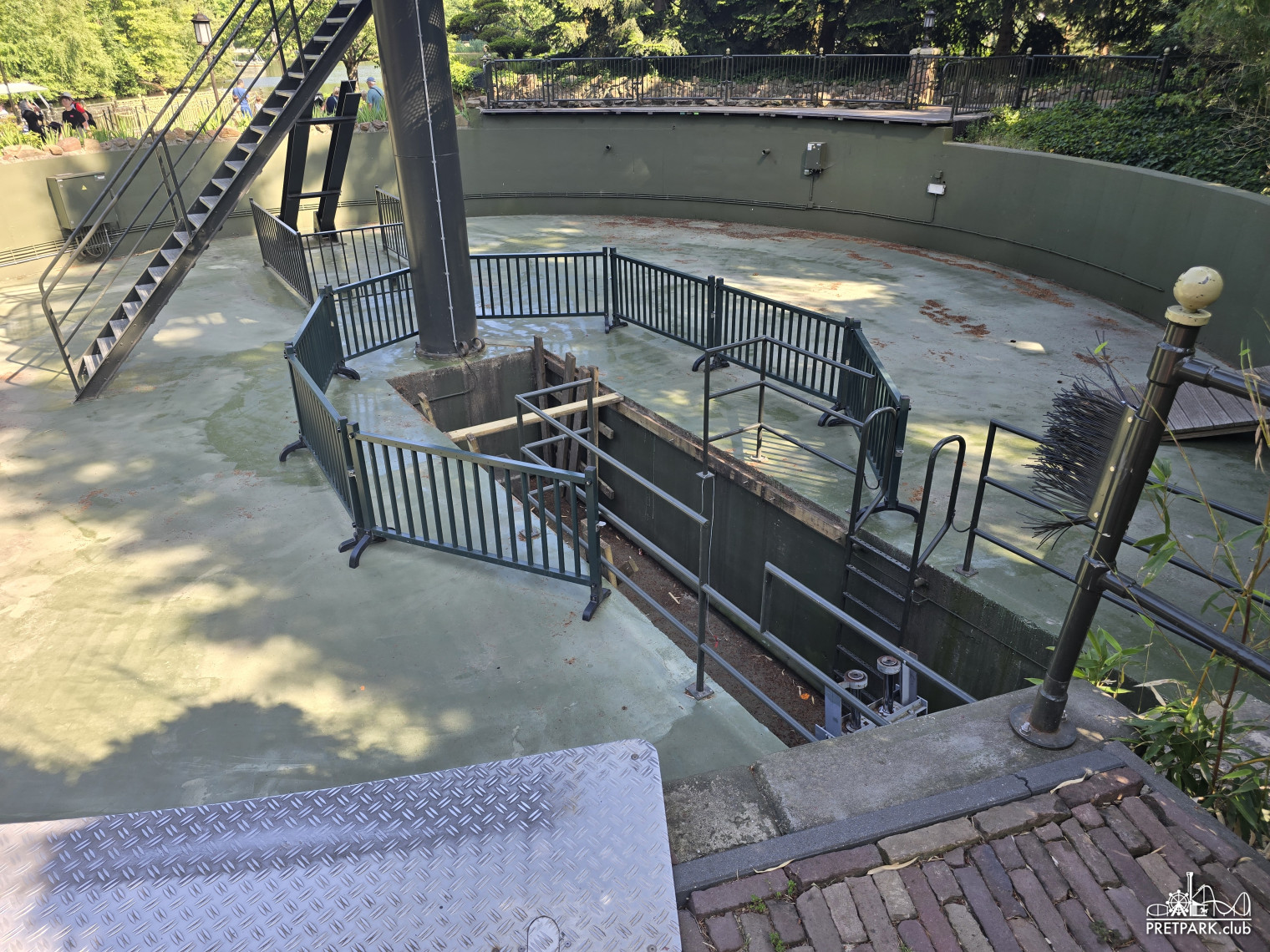 Bij de pagode staan in de ruimte onder het eiland allemaal dranghekken rondom de put en in de put is nogal wat hout te vinden.