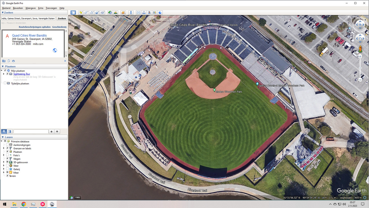 Helaas is 't park en de club deze week om minder goede redenen in 't nieuws: de Mississippi treedt buiten haar oevers en het historische stadion, dat opende in 1931, en pretpark zijn momenteel ongewenst een eigen eiland. Hopelijk zakt het water snel en kan alles weer open, want het seizoen is al begonnen en zit er begin september weer op, dus nu moeten de centjes verdiend worden.