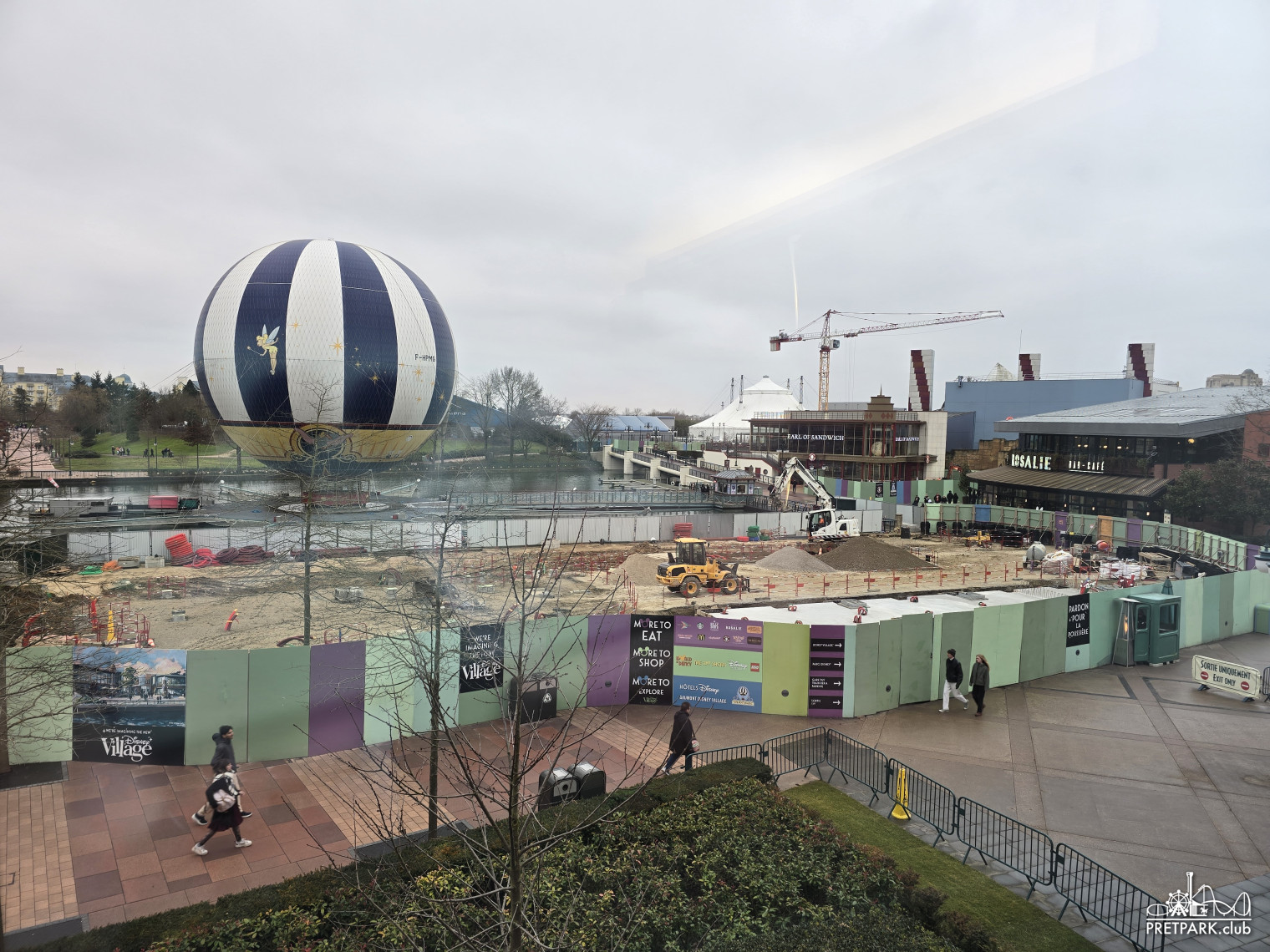 Ik heb terug proberen te zoeken naar initiële maquettes en ontwerpen (uit het Espace Euro Disney Center). Daar zie ik óf heel veel zeilbootjes en/óf geen steigers.