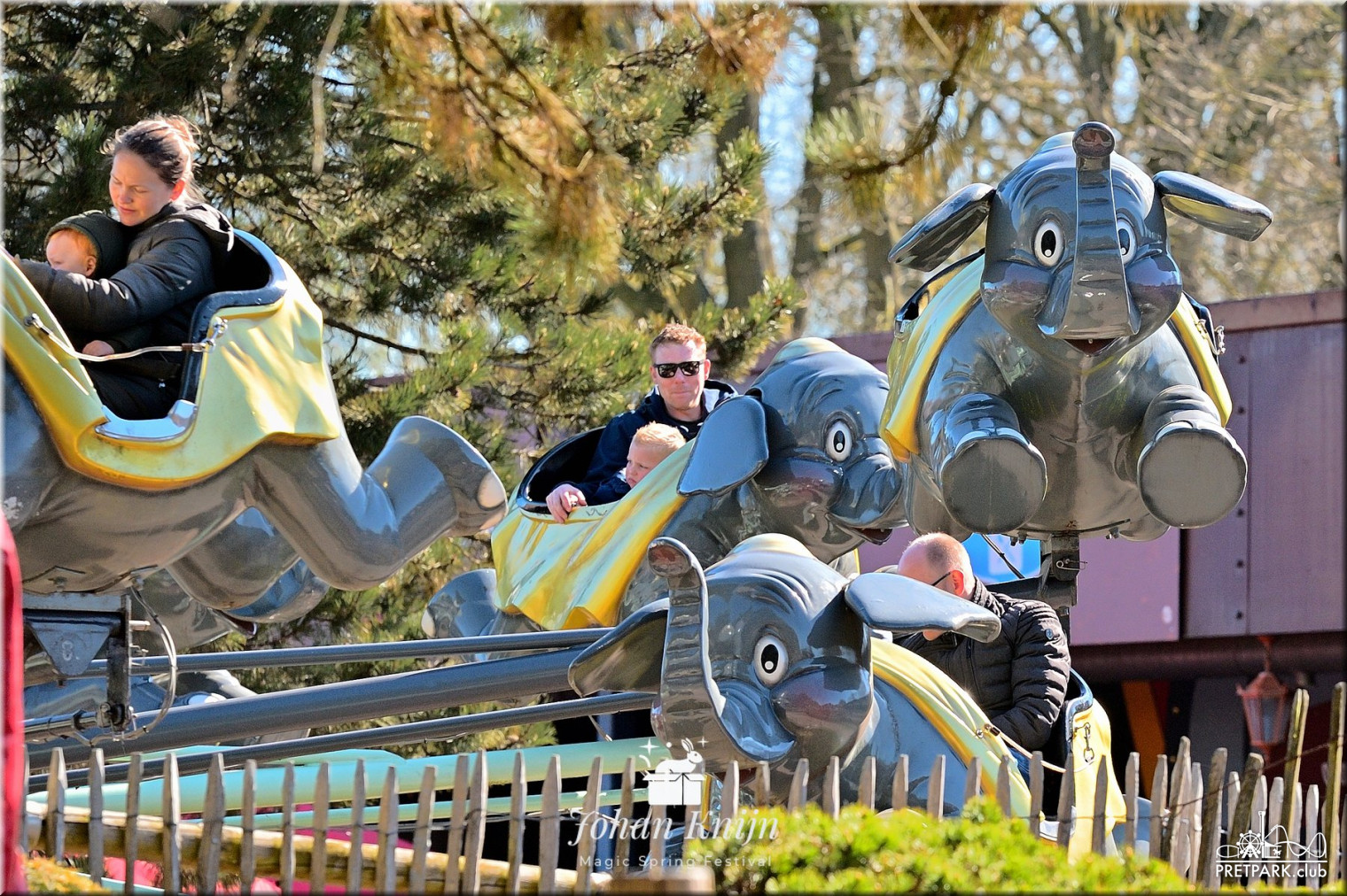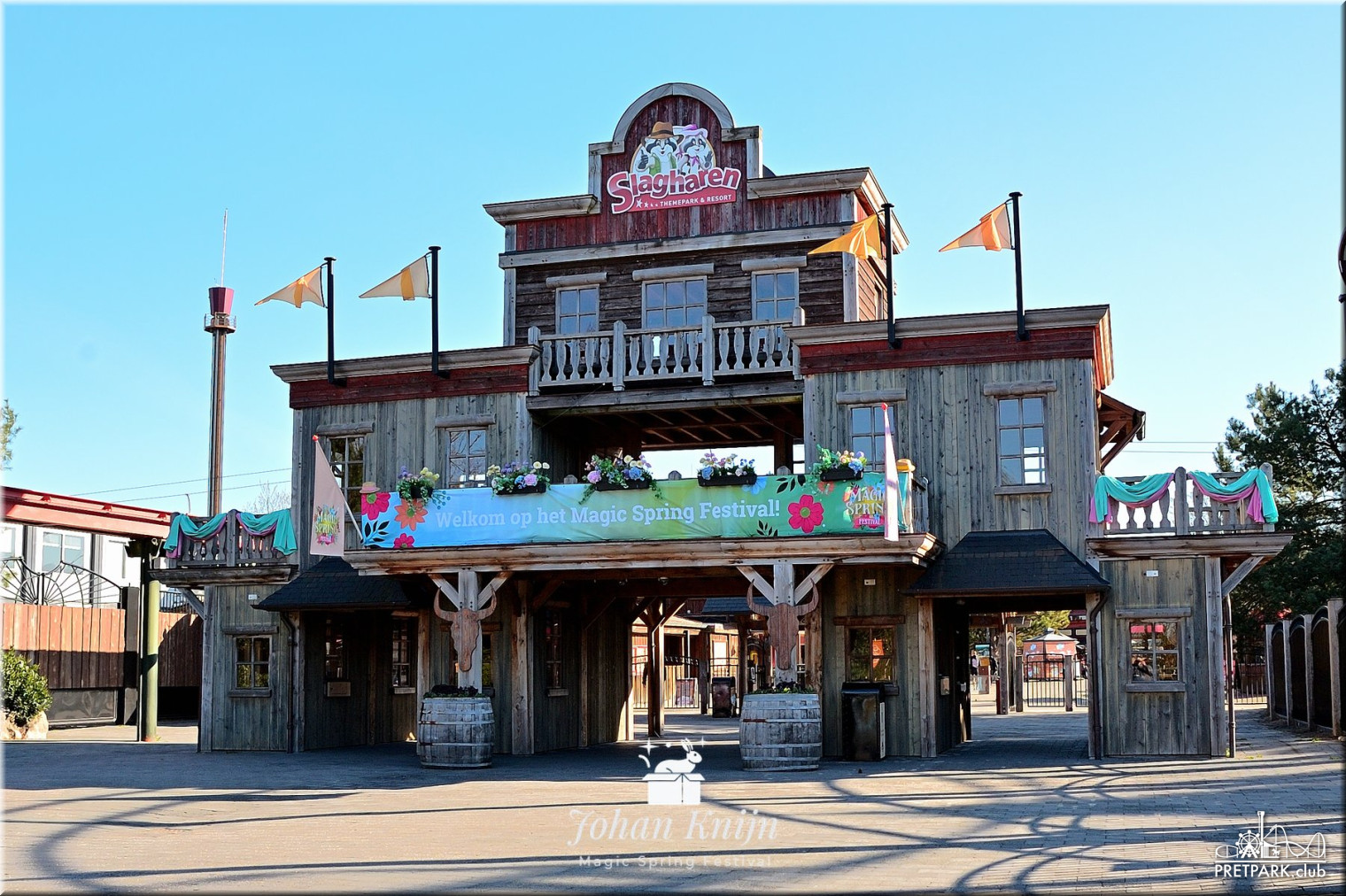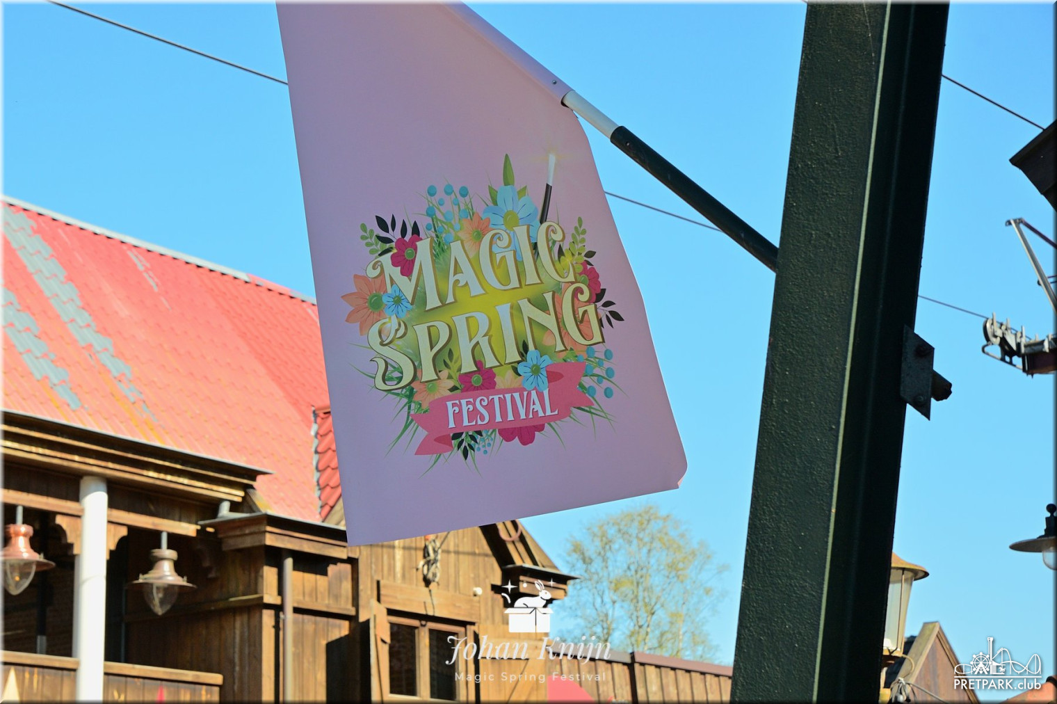 Het park ligt er mooi bij. Overal mooie gekleurde vlaggen die duidelijk maken dat er voorjaar en magie in de lucht hangt. Helaas zijn er een paar attracties nog niet klaar na de winterstop. Zo is de wildwaterbaan nog “Trackless