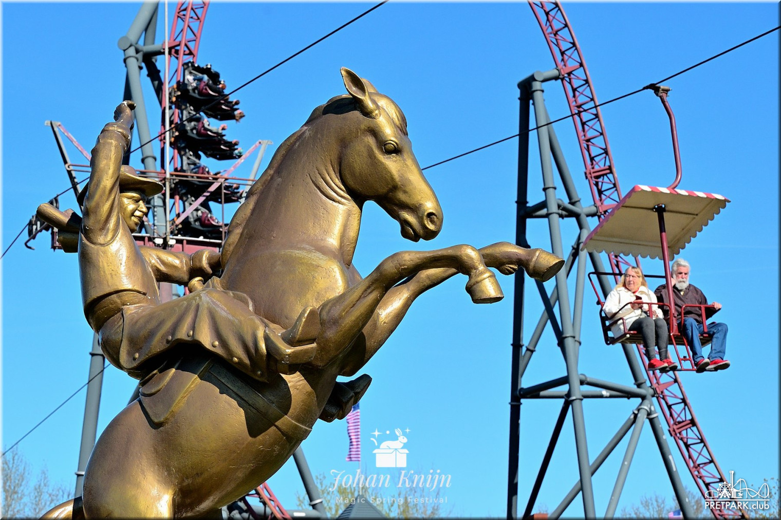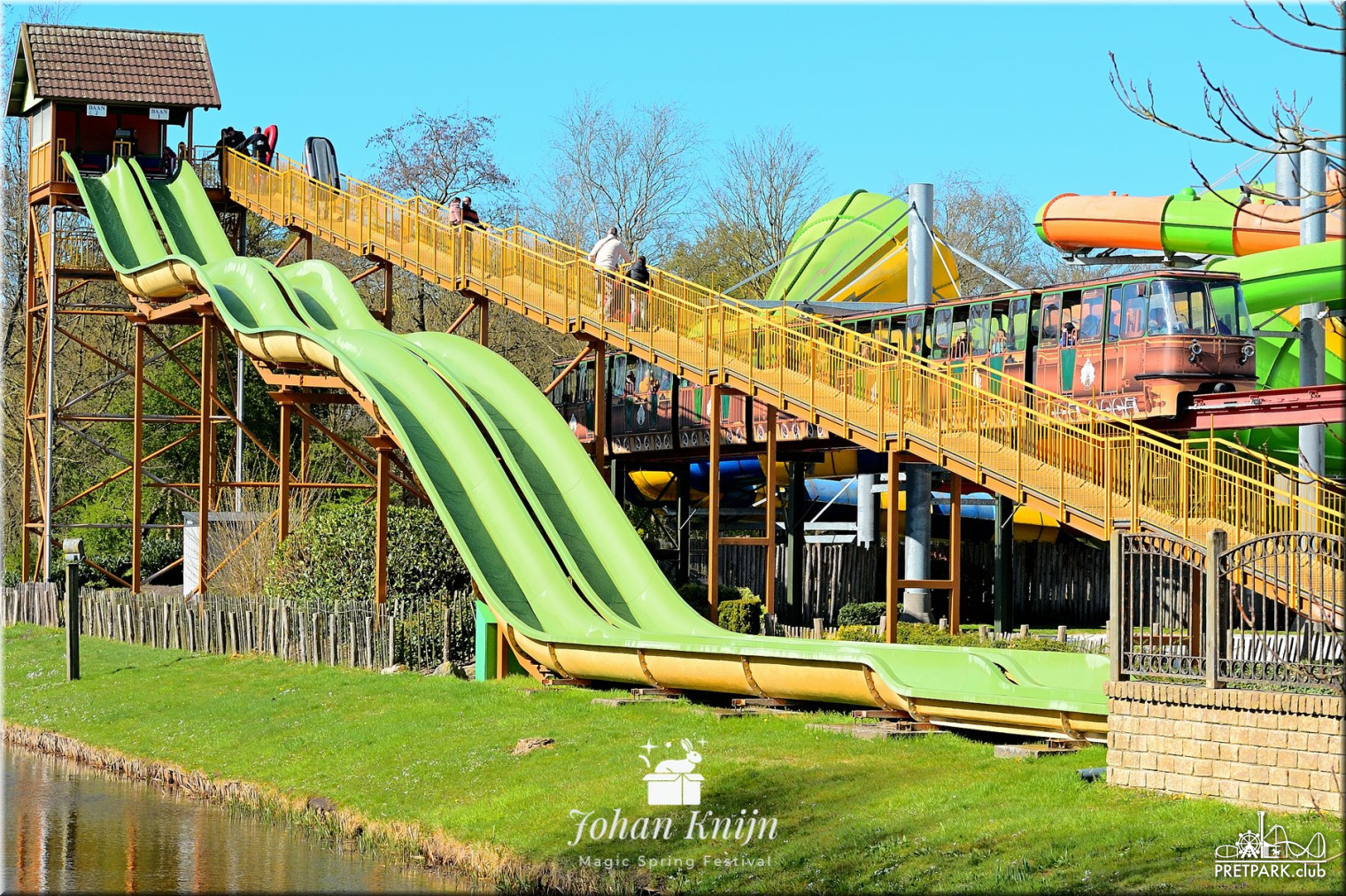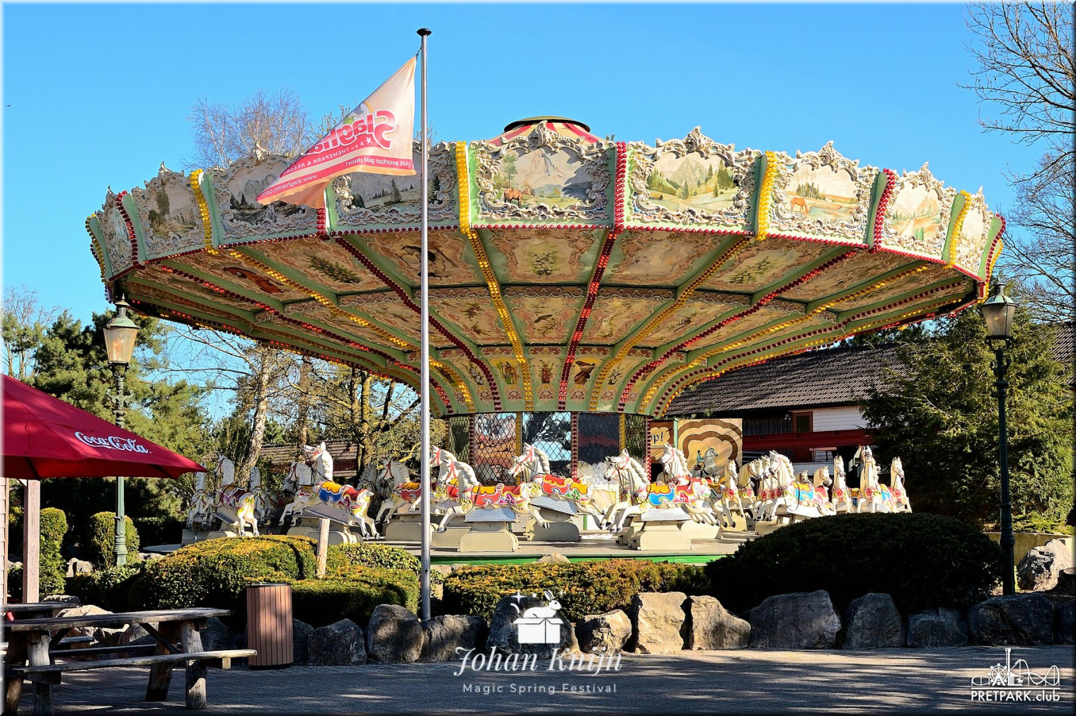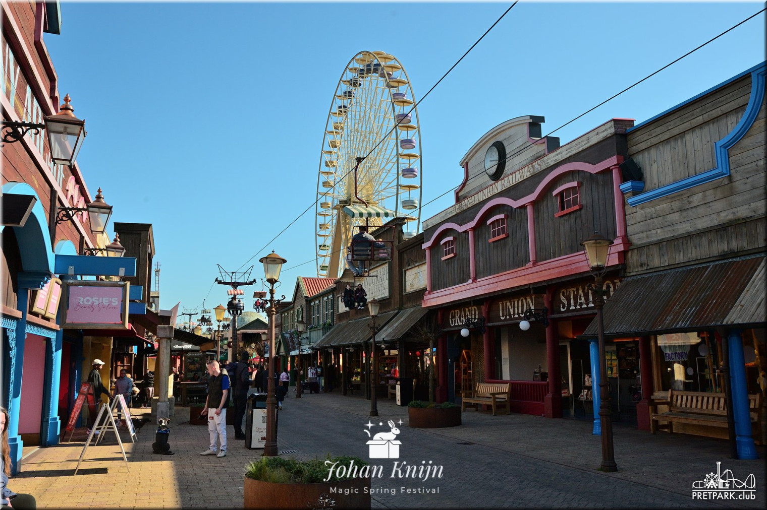Het park ligt er mooi bij. Overal mooie gekleurde vlaggen die duidelijk maken dat er voorjaar en magie in de lucht hangt. Helaas zijn er een paar attracties nog niet klaar na de winterstop. Zo is de wildwaterbaan nog “Trackless