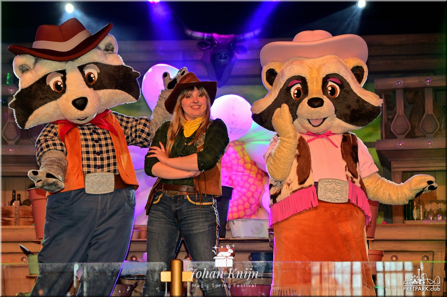 Mijn vrouw Saskia en hond Django zouden thuis blijven. Maar om half acht zondagmorgen besloot ze toch mee te gaan. (Controle?) Om even over half tien waren we op de parkeerplaats en kon het avontuur beginnen. Traditiegetrouw eerst aan de koffie bij Big Jake, daarna zouden we wel verder zien. Toen in het restaurant Randy, Rosie, de Sheriff en een Cowgirl voorbij het tafeltje liepen waar wij zaten begon Django heftig te zwiepen met zijn staart van enthousiasme. Blijkbaar vind hij die wasberen erg aardig.