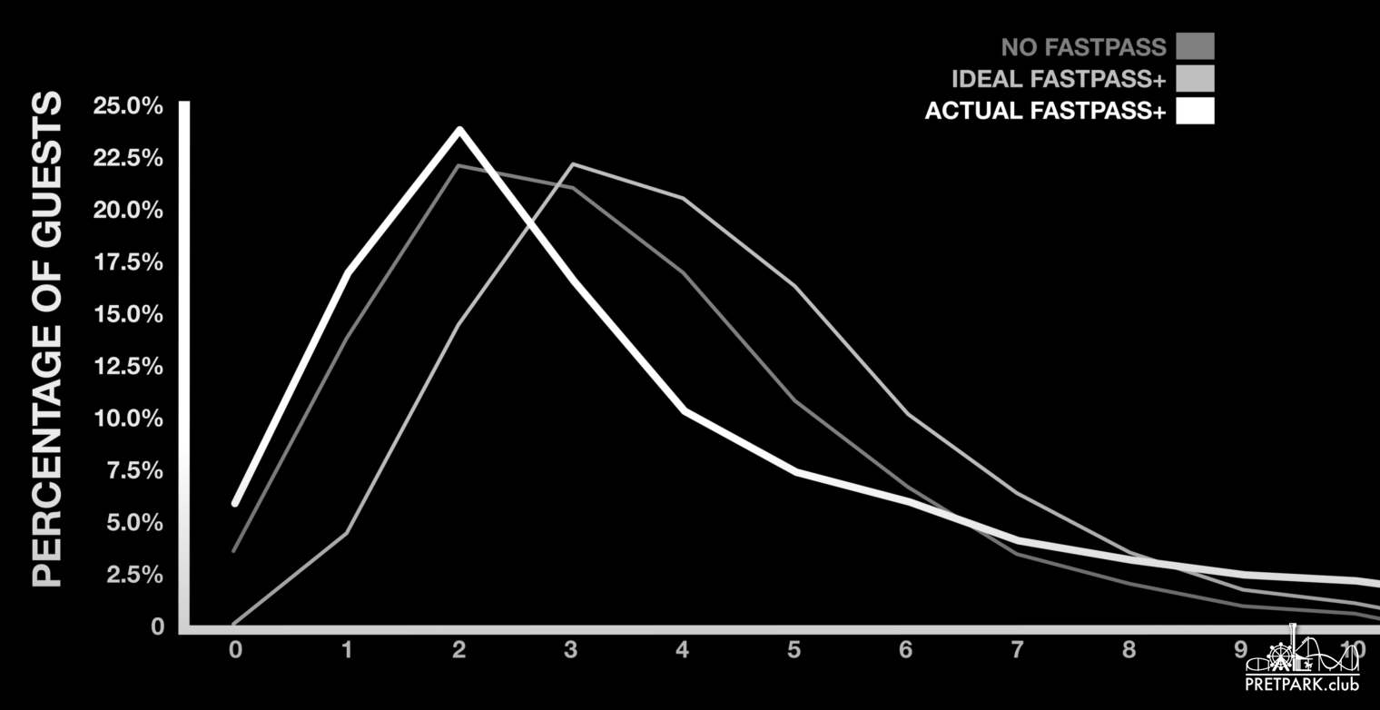 Ze rekenen het virtueel wachten inderdaad niet mee als wachten (wat niet onterecht is) en het gemiddeld aantal attracties gaat omhoog omdat er meer infills gedaan worden.