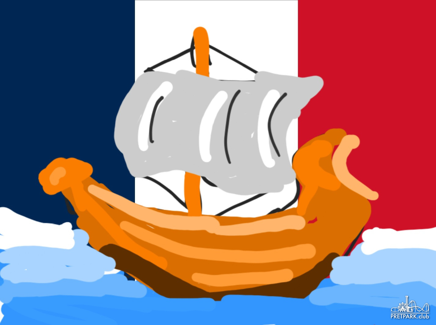 Frederik Als deze vlag nu niet de Franse maar de Nederlandse was, zou ik nog de Vliegende Hollander denken. Voor de rest kan ik niet echt een achtbaan bedenken die Frankrijk en scheepvaart linkt.