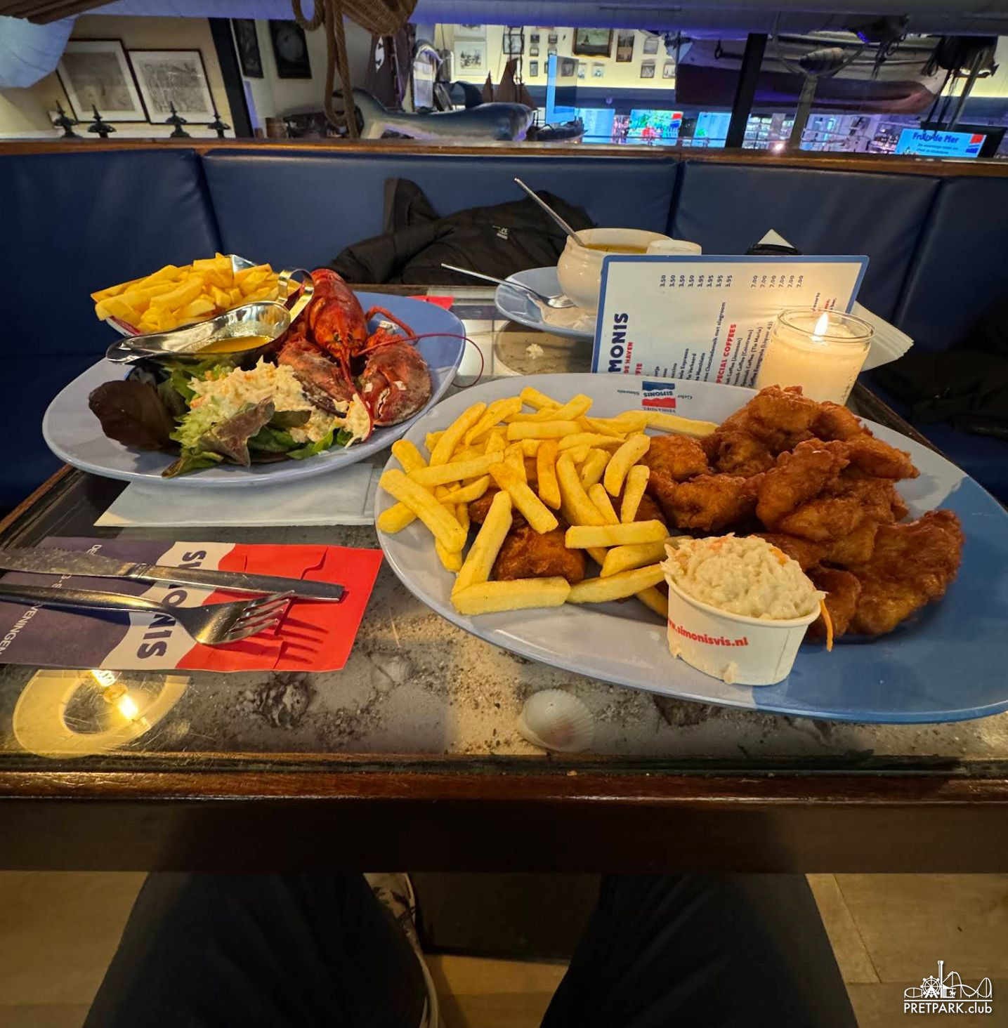 Michael Simonis in Scheveningen. Een vergelijkbaar menu op papier (kibbeling, friet en saus) kost daar 19,50. Zit je wel in een medium afgewerkte toko in de vishaven of aan de boulevard. Catch by Simonis vangst van de dag doet 29 euro. Dat is zelfs duurder.