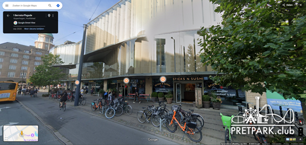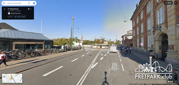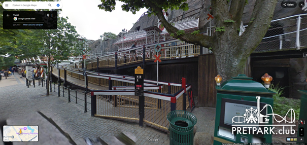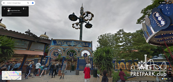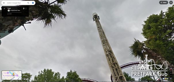 Mijn camera bleef overigens tot ’s avonds in de tas, dus om het TR toch doorlopend van wat beeld te voorzien, gaan we gezamenlijk aan Google Maps-toerisme doen. Hier het zicht vanaf de route van hotel naar pretpark; een wandeling van minder dan 10 minuten, daar teken ik voor!