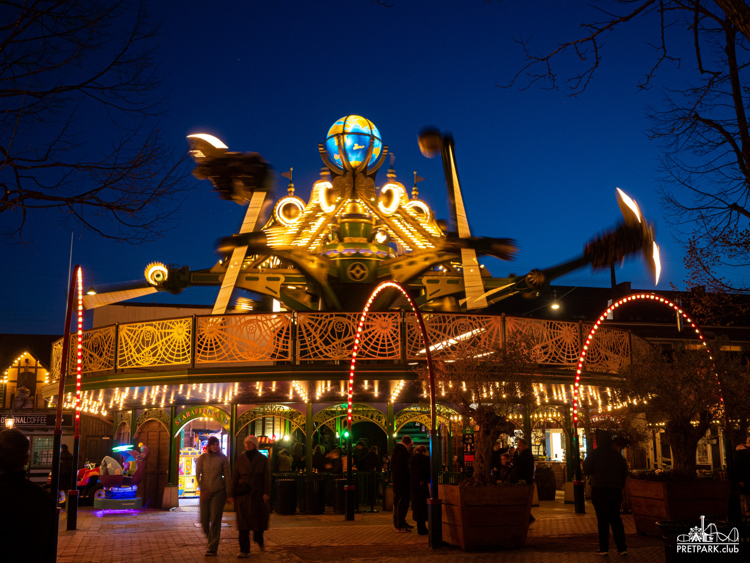Na het eten is de piekdrukte in het park duidelijk wel voorbij. Dat geeft me kans om eindelijk Mælkevejen te doen, de MACK powered coaster die in 2019 Odinexpressen, ook een MACK powered coaster met dezelfde lay-out, verving. Waarom is me een raadsel: de oude achtbaan was al ruim 30 jaar oud, maar zou die al zover afgeschreven zijn geweest dat nieuwbouw van een bijna exacte kopie voordeliger was? Afijn, het is een prima familie-achtbaan, hoewel ik zijn dubbele broertje Max & Moritz net iets leuker vind. Wel complimenten voor het thema: het Jules Verne-achtige ruimtethema is erg tof uitgewerkt, net als bij de buurattracties overigens. Ik kan me alleen voorstellen dat de kaalslag in deze hoek van het park even schrikken kan zijn voor iemand die hier 10 jaar geleden voor het laatst was: Odinexpressen reed tussen volgroeid groen door, terwijl de twijgjes die nu onder Mælkevejen staan nog de nodige groeijaren nodig gaan hebben.