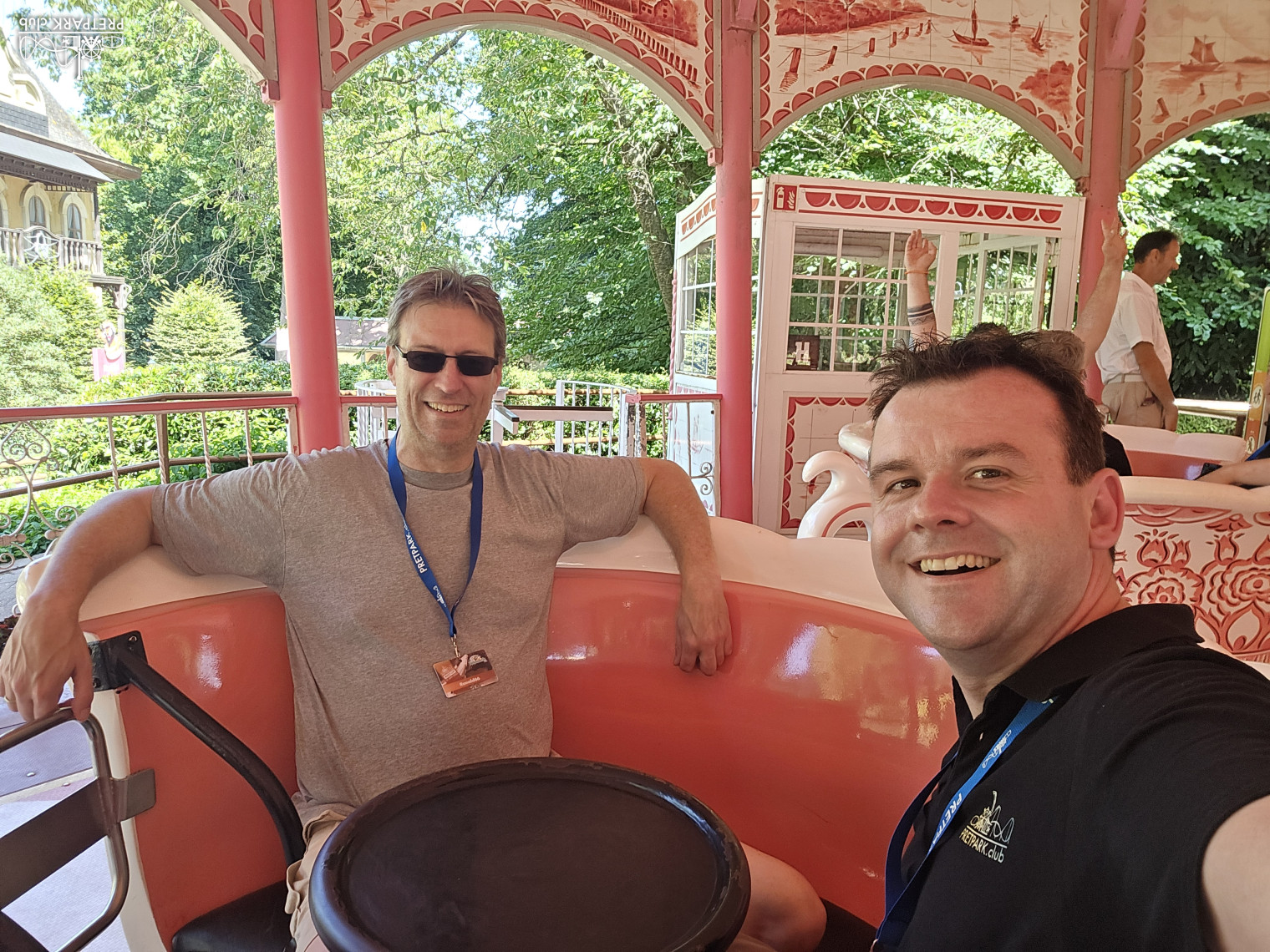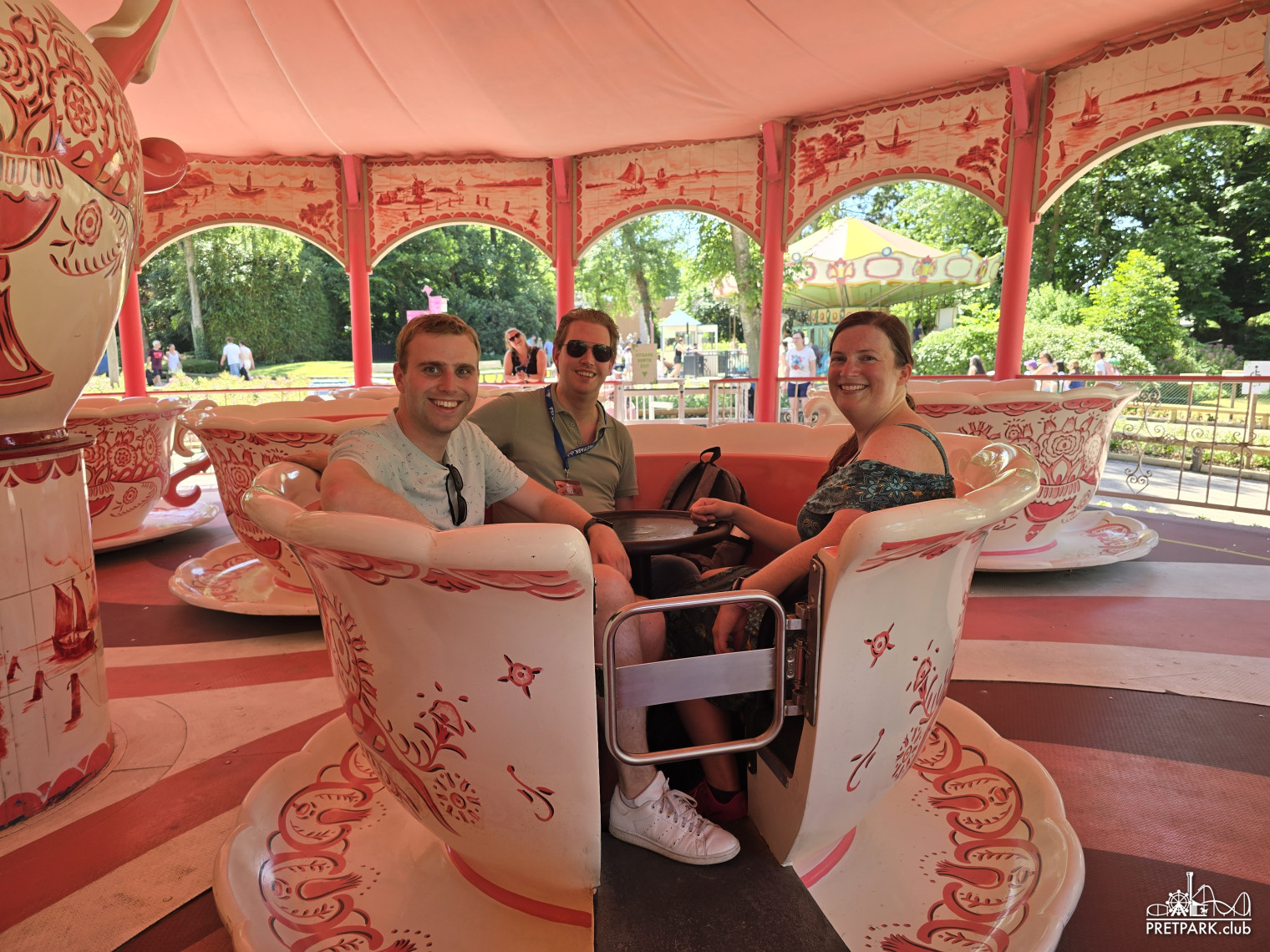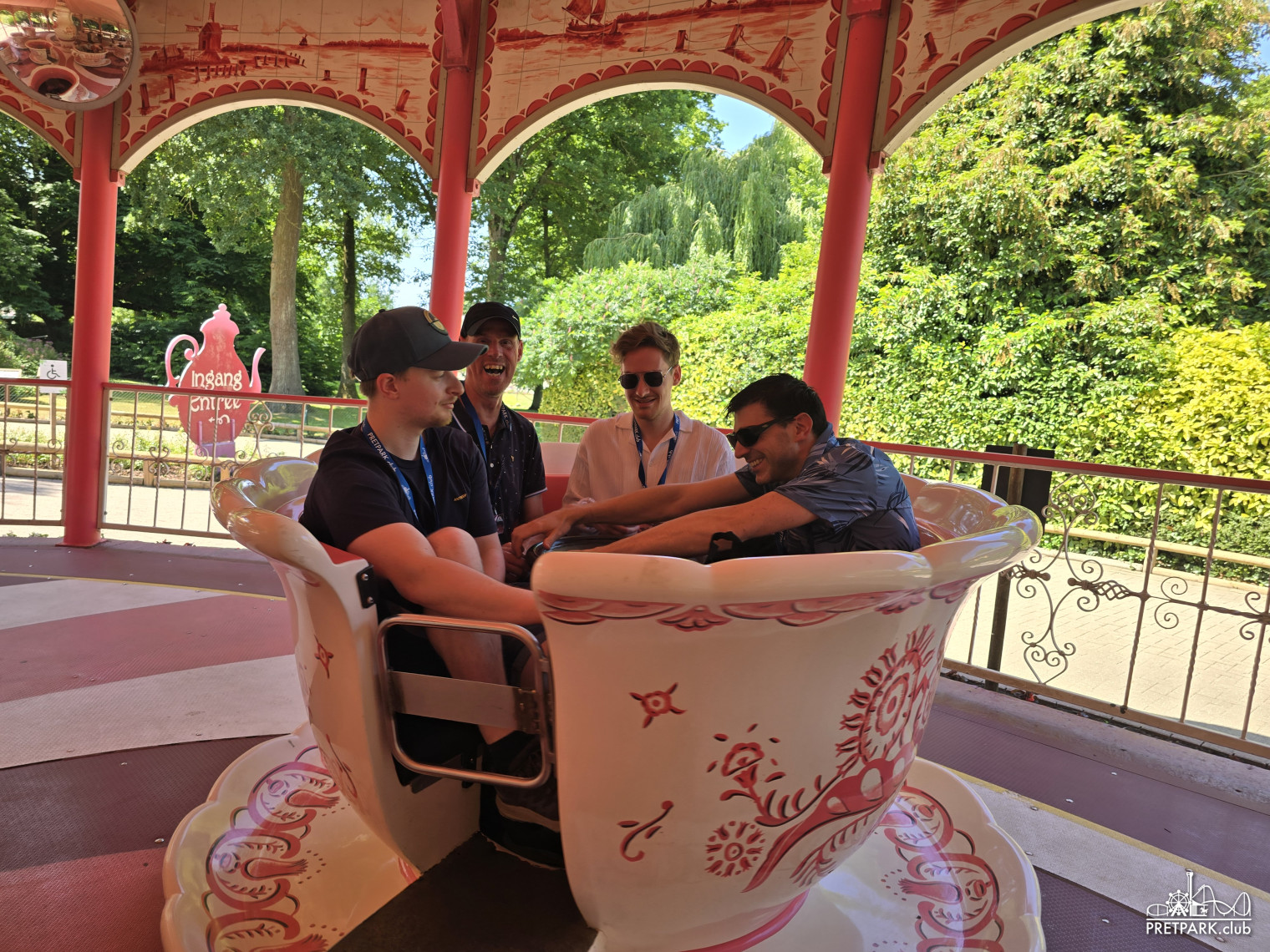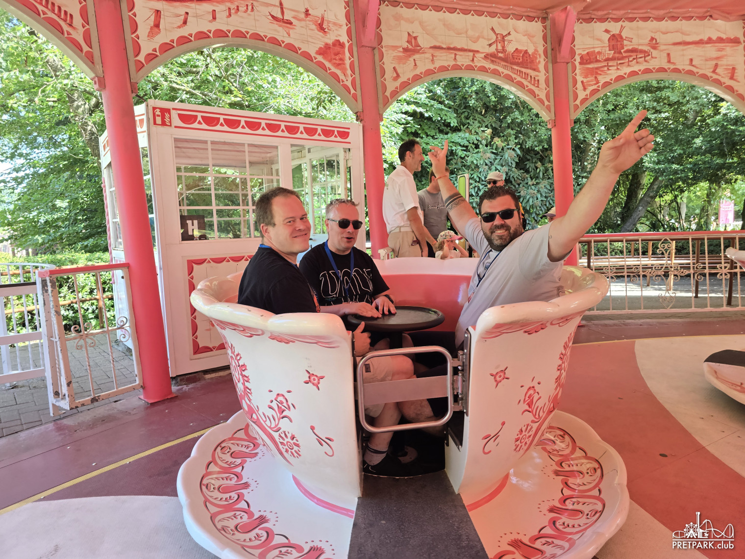 Terug beneden aangekomen komen we grote groep clubleden tegen die we vandaag nog niet zagen. Zoals je op de foto’s heb kunnen zien werd de groep steeds groter gedurende de ochtend door de afwijkende aankomsttijden. Zij willen voor de lunch nog even Houdini’s Magische Huis meepakken, dat blijkt qua tijd voor nu even niet helemaal te passen dus we maken een ritje in de Koffietassen wat een stuk korter duurt (hopelijk is @Ronald66 ook niet meer duizelig inmiddels 😉) en gaan daarna richting de King’s Table voor de lunch.