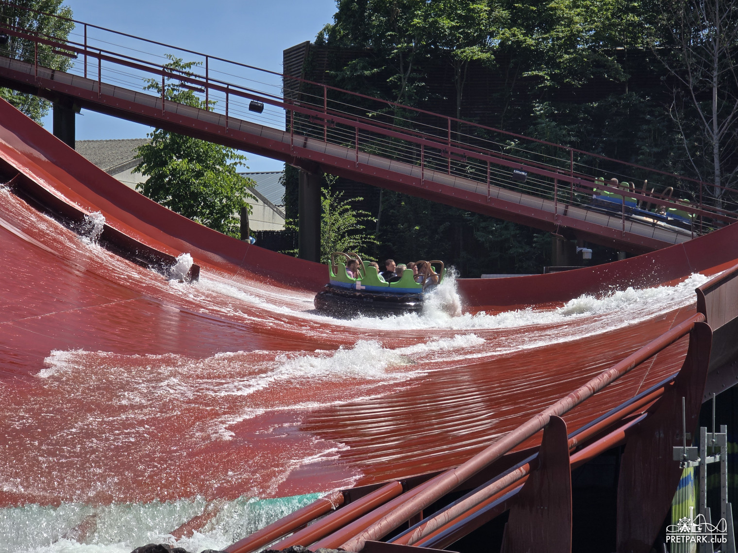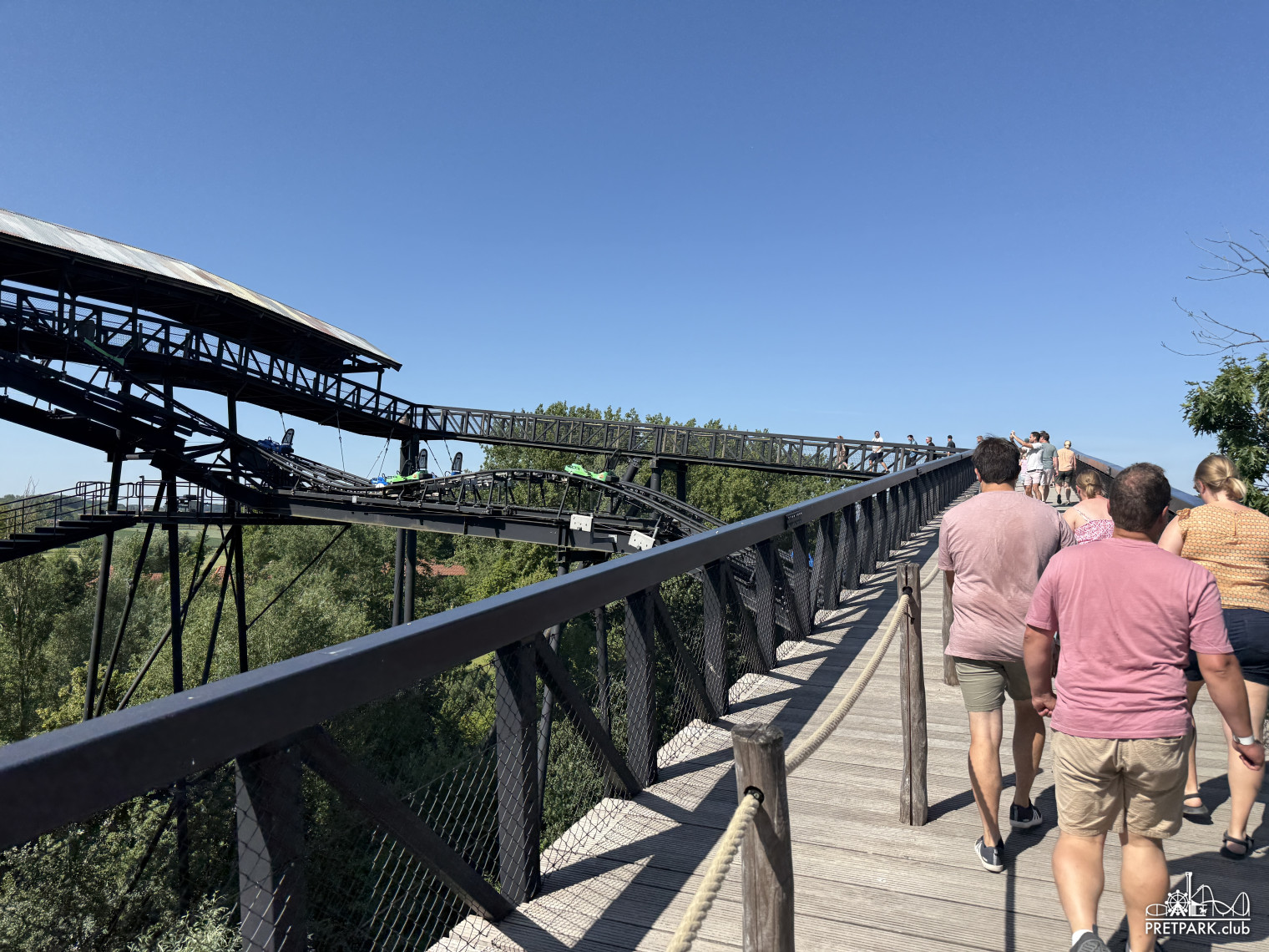 Dan is het tijd voor opnieuw een nieuwe achtbaan voor mij, Wakala. Wederom een erg verrassende achtbaan. Van deze wist ik al wel welke trucjes hij in petto zou hebben, maar alsnog had deze familie achtbaan net wat meer pit dan ik verwacht zou hebben en heeft mij erg vermaakt. Deze wordt overigens opgevolgd door opnieuw een nieuwe ervaring in het park voor mij, Dawson Dual. Ik heb dat altijd een beetje een twijfelachtige keuze gevonden. Een Alpine Coaster zo hoog bouwen zonder berg maar op palen.. Maar na een ritje gemaakt te hebben snap ik het eigenlijk ook weer wel. De wandeling naar boven is eigenlijk een soort van “boomkroon pad” met mooie uitzichten en het ritje zelf zoeft lekker tussen diezelfde bomen door. Wel jammer dat de snelheid behoorlijk beperkt wordt door de remmen onderweg, maar wel goede zaak dat het remsysteem op de karren zelf uitgeschakeld is zodat je altijd een ritje op goede snelheid hebt. Ik doe als eerste de groene baan en ga meteen nog eens naar boven voor een ritje in de blauwe, maar helaas die schiet in storing dus het werd een dubbele rit op de groene baan.