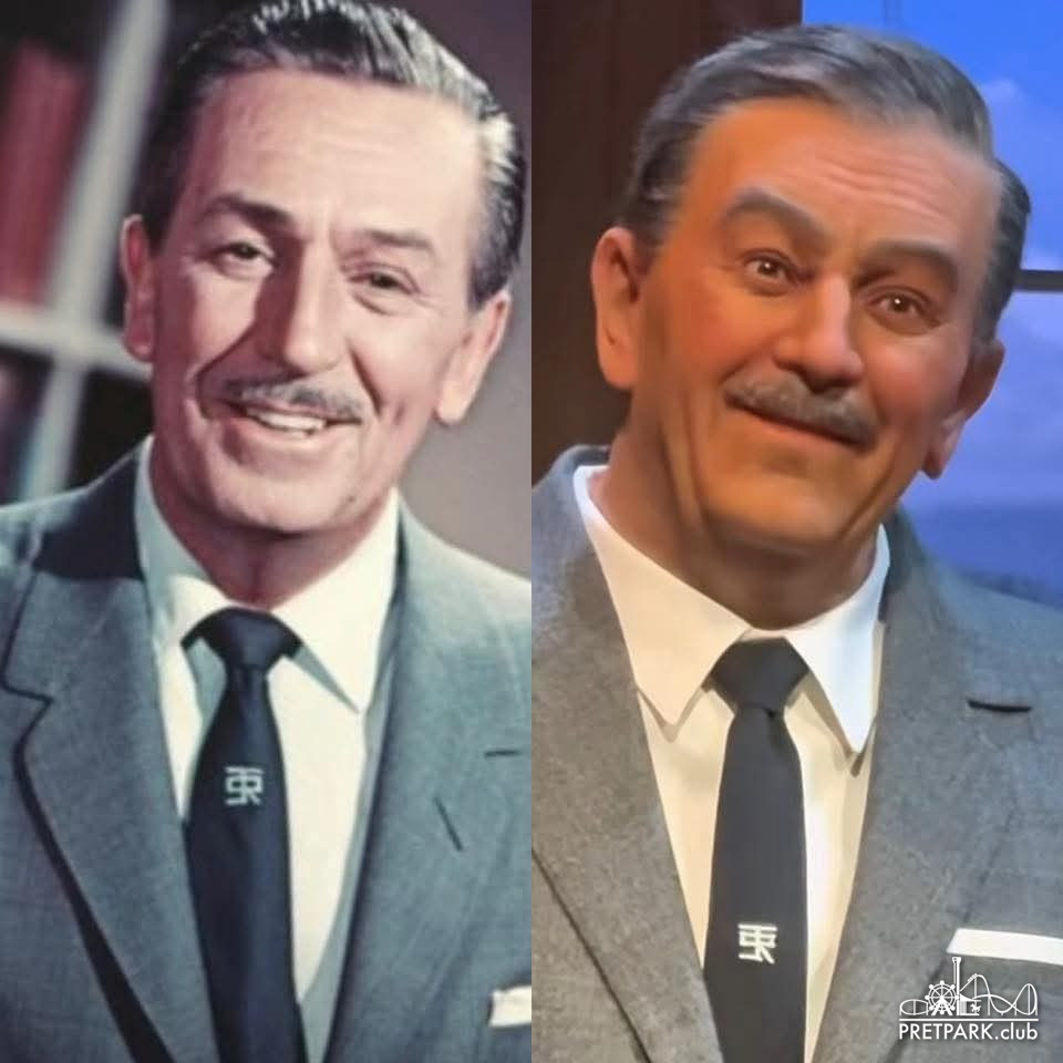 Maar goed, de gelijkenis is niet perfect. Het blijft lastig om bestaande mensen na te maken, die we zo goed van foto's en bewegend beeld kennen. We zien dat bij deze Walt-animatronic, maar ook bij acteurs in de Great Movie Ride en bij de recentere president-animatronics. De Jack Sparrow-figuren zijn de uitzondering, maar daar is natuurlijk sprake van een grote pruik, een bandana/hoed, make-up en een baard. Allemaal zaken die de herkenbaarheid vergroten, ook als het gezicht niet helemaal klopt.
