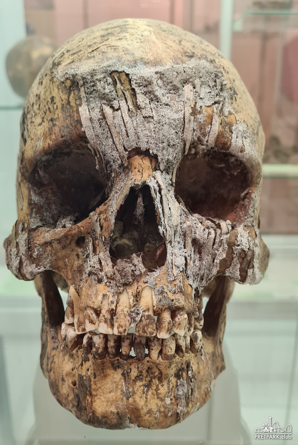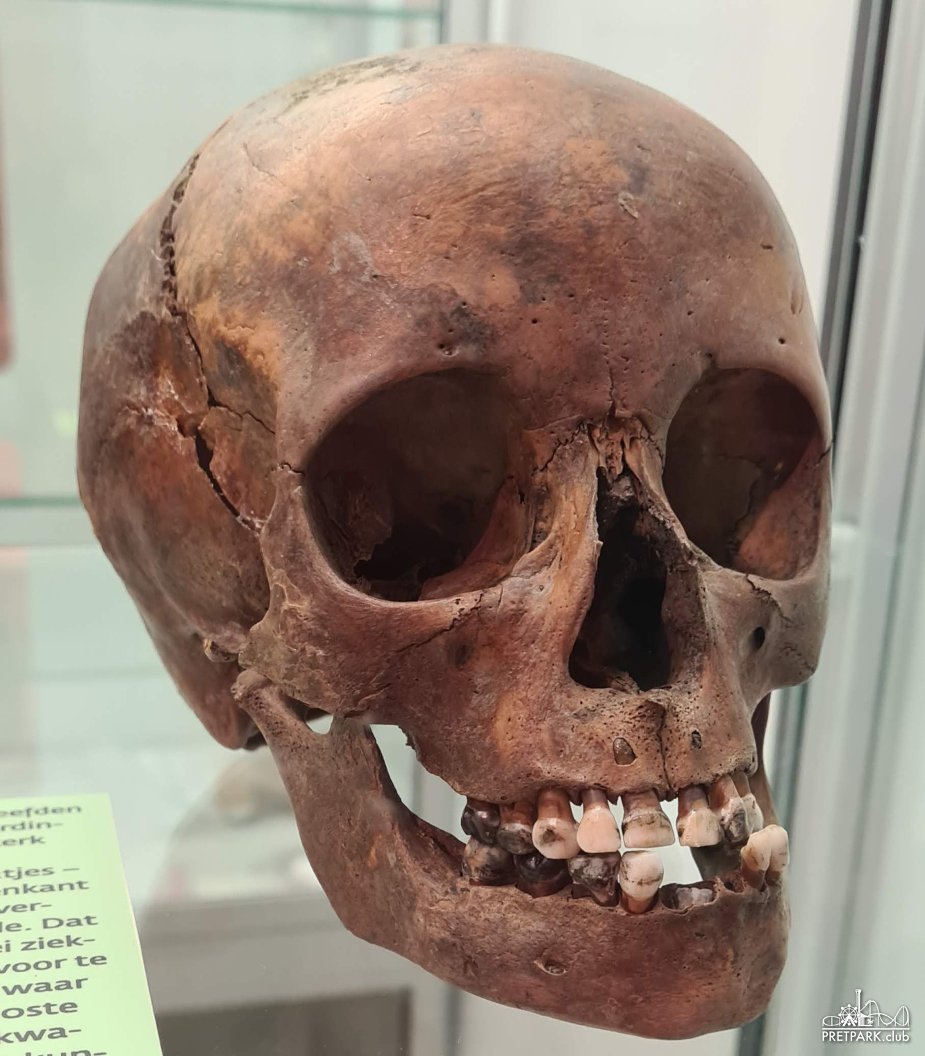 Direct na de entree brengt de route je eerst naar het museumgebouw. Hierin veel informatie wat je zoal in de grond kunt terugvinden. Aan de hand van gevonden schedels leer je meer over hoe men vroeger leefde. Aan de staat van het gebit kon men zien dat meisjes het zwaarder hadden dan jongens. Slechtere voeding, dus ook meer gebreken aan het gebit. Men werd vaak niet ouder dan 23 jaar.