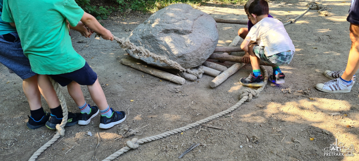 Na een bezoek te hebben gebracht aan een hunebed en grafheuvel, waar je terloops leert hoe men aan de naam hunebed is gekomen, kan je ervaren hoe het is om die zware stenen te verplaatsen. Dus... handen uit de mouwen!