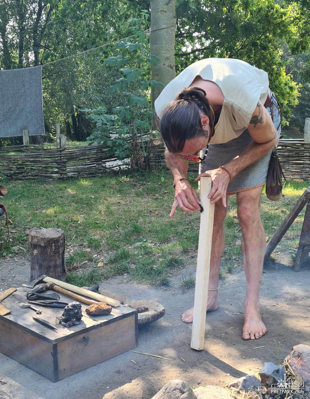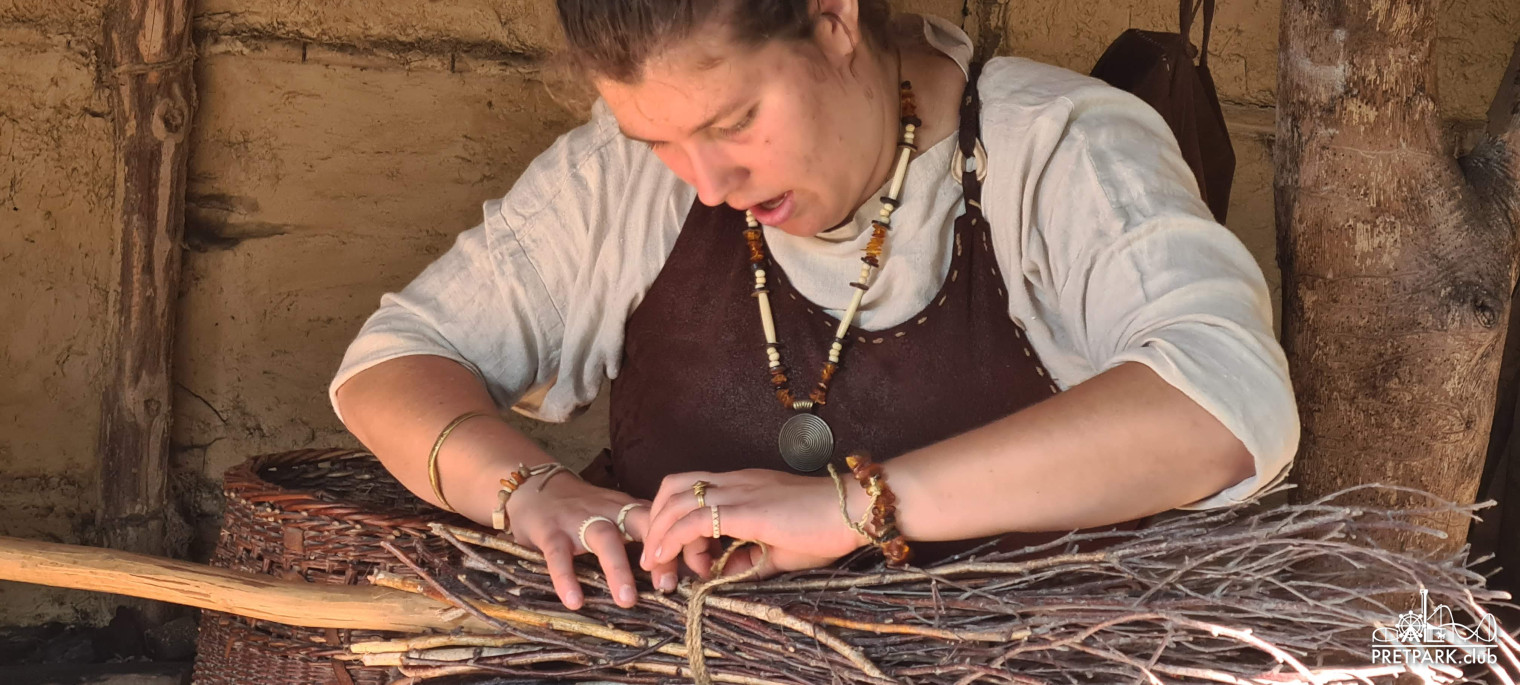 De volgende stop is de boerderij uit de Bronstijd. Een boerin laat zien hoe je een bezem maakt. Ook verteld ze verhalen over het leven op de boerderij uit die tijd.