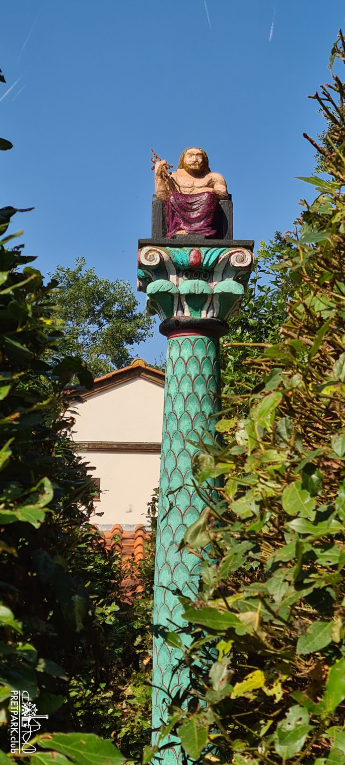 Als we het geheel ommuurde gebied van de tempel binnenlopen, zien we de statige zuil van Jupiter. Van Jupiter mocht je alleen de tempel betreden wanneer je een schoon lichaam had. Eerst naar het badhuis dus.