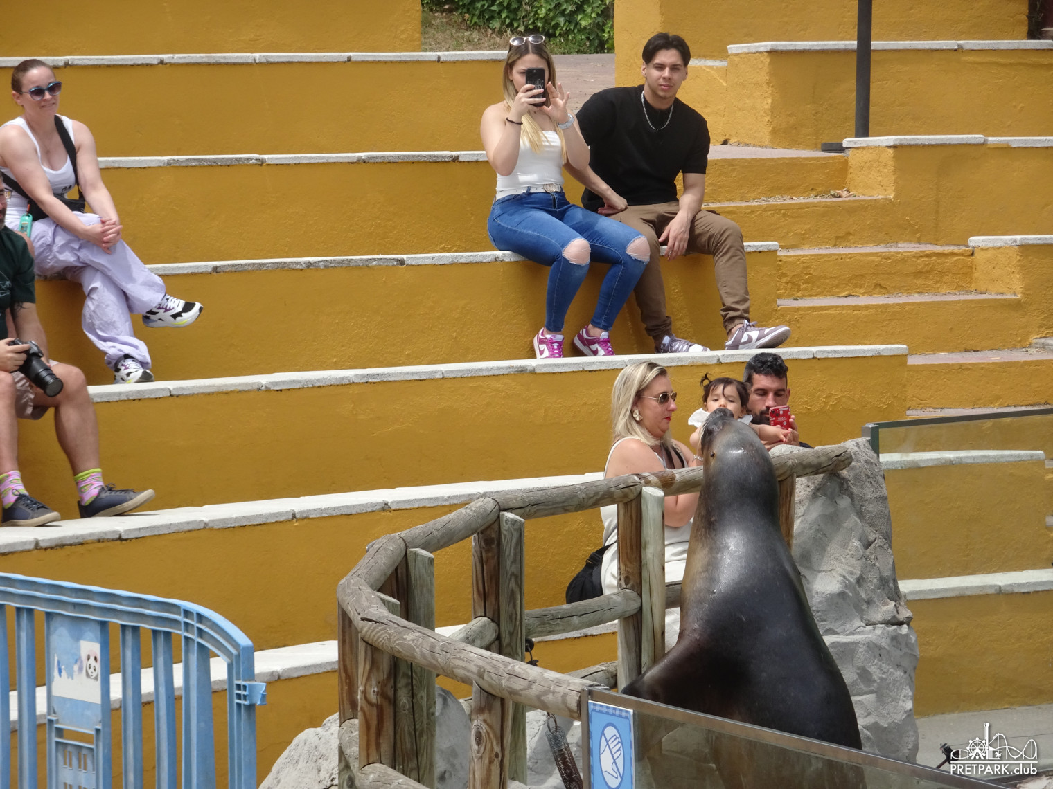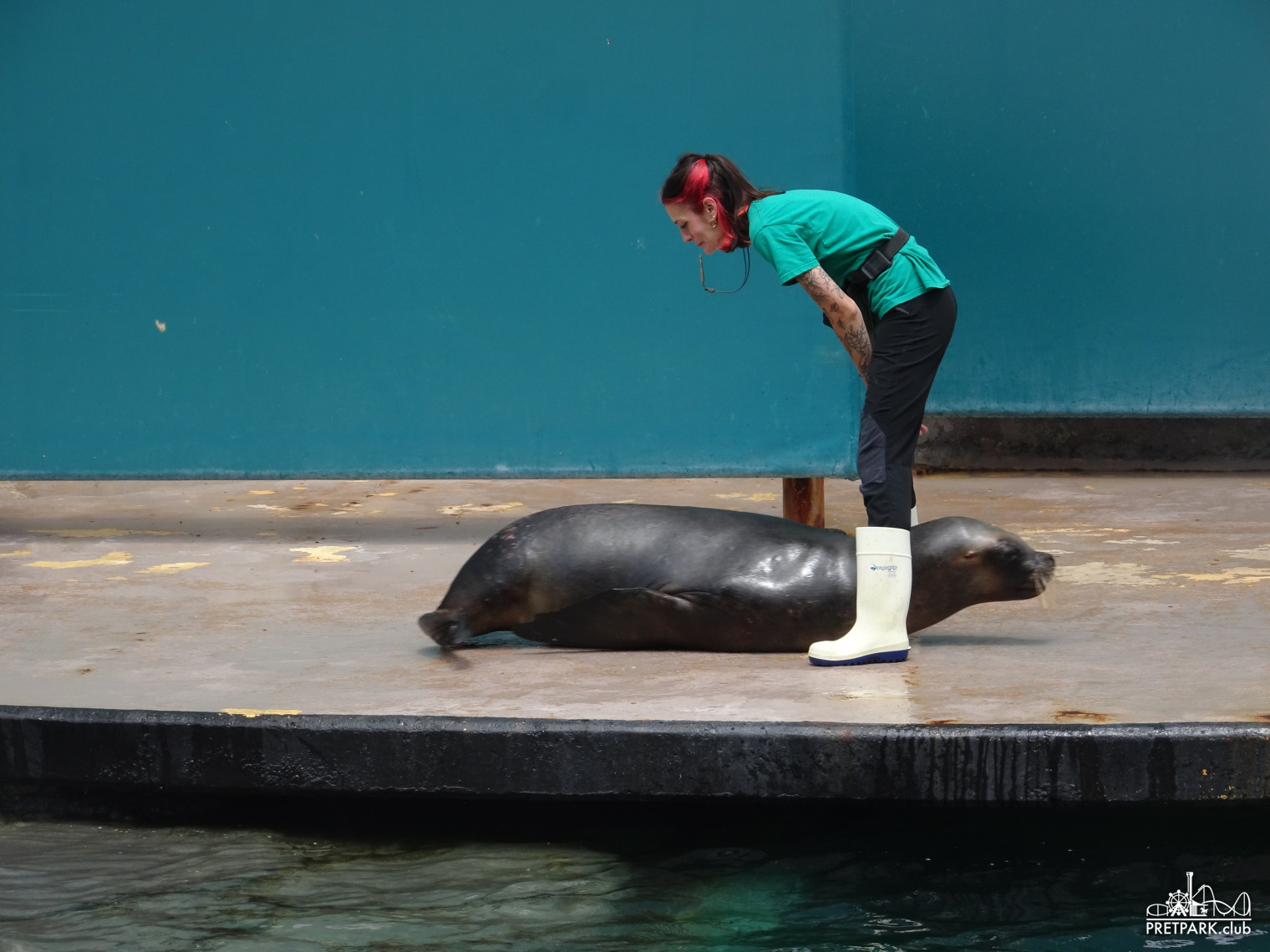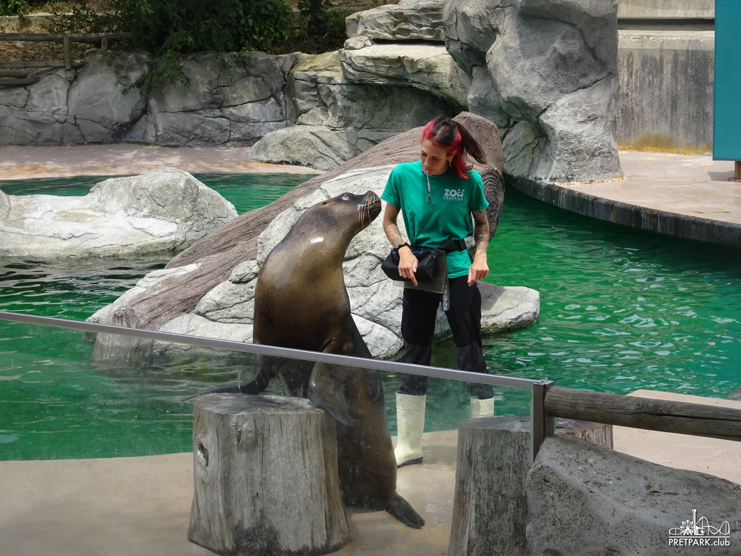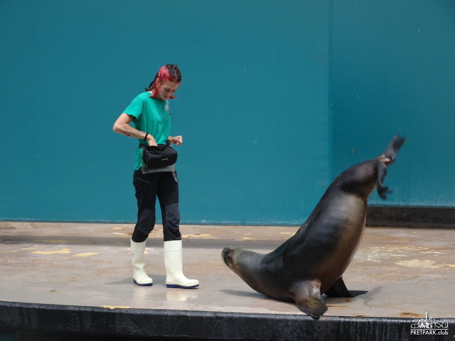 Persoonlijk vind ik de indeling een beetje wazig, je hebt geen looproute en alles loopt door elkaar heen. Zodoende maak je voor mijn gevoel extra meters voor niks omdat je alles wilt zien. Maakt verder niks uit, wandelen doen we toch al meer dan genoeg deze vakantie. Ondertussen hebben we ook een show gezien welke leuk was. Maar van deze show heb ik er al meerdere gezien in diverse dierentuinen. Leuk moment om lekker even tot rust te komen. De eerste show waren we aan de late kant zodat we vol in de zon zaten, we moesten dus even in de buurt blijven voor de volgende show. Eerste indruk van de dierentuin is dat er het netjes bijligt en de verblijven ruim genoeg zijn. Een nieuwe neushoorn was wat wild en de verzorger vertelde in het Engels dat deze net een paar weken nieuw in de dierentuin was en nog aan het wennen was. Deze mocht ook nog niet bij de andere neushoorns.