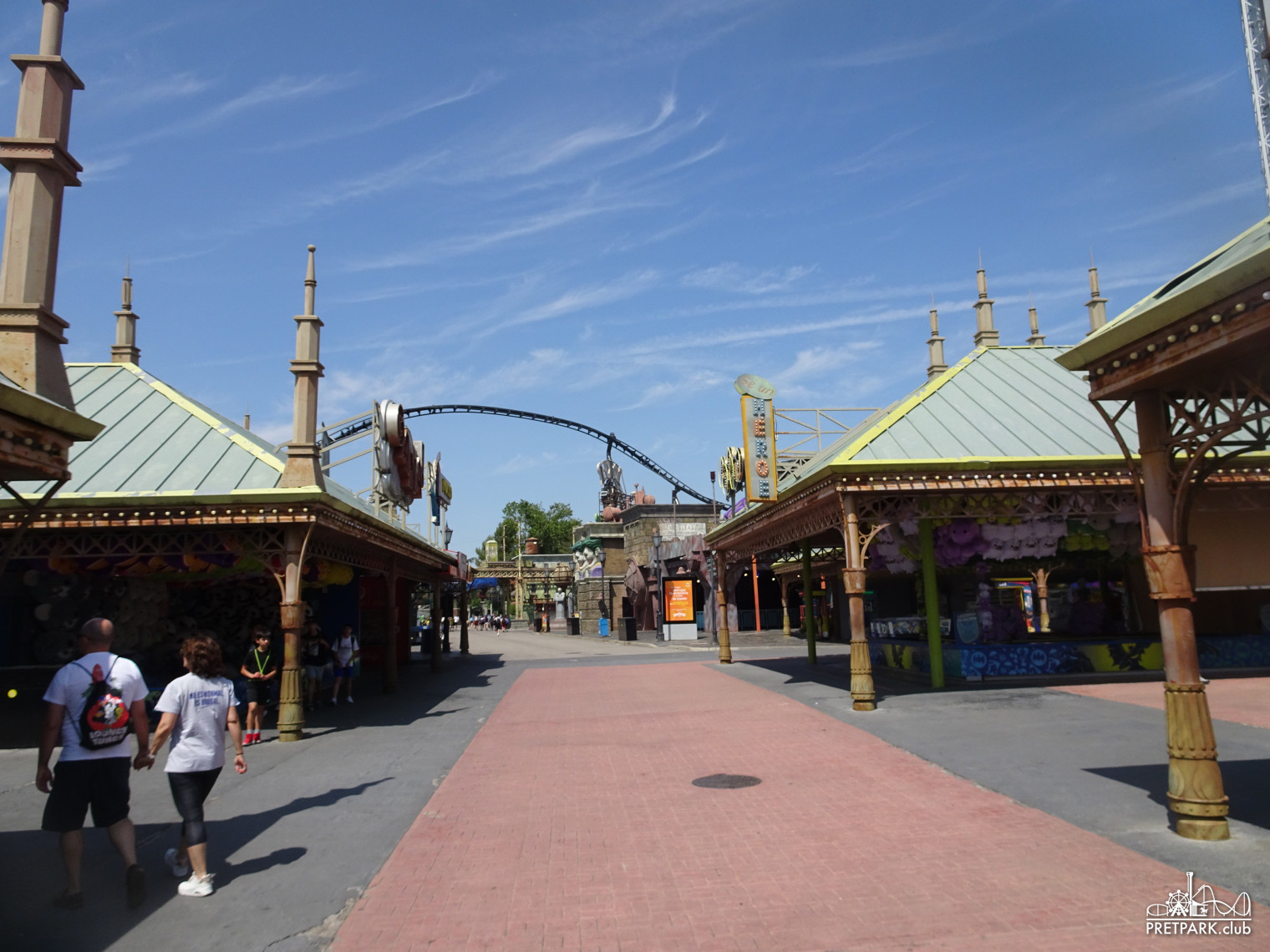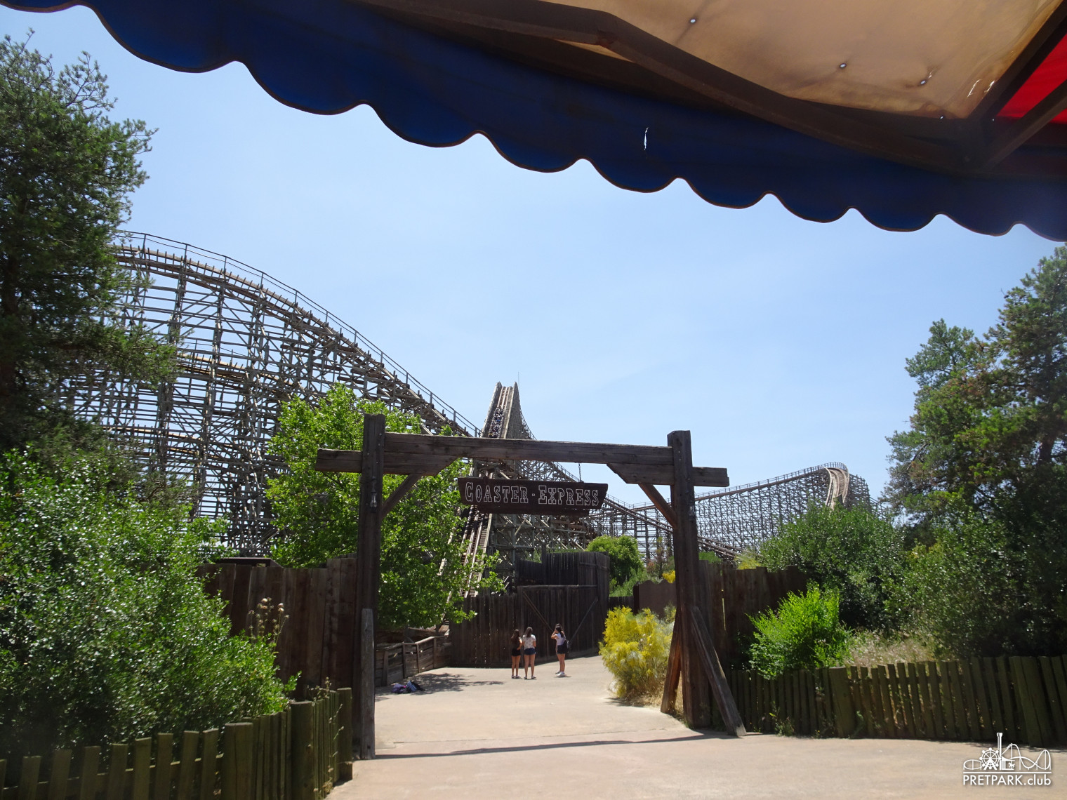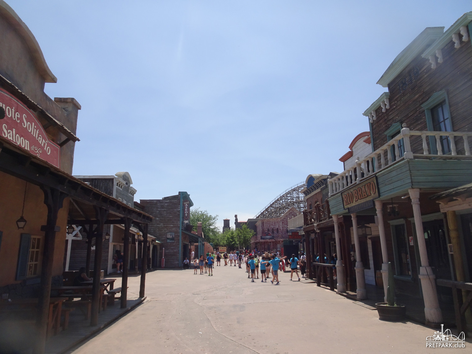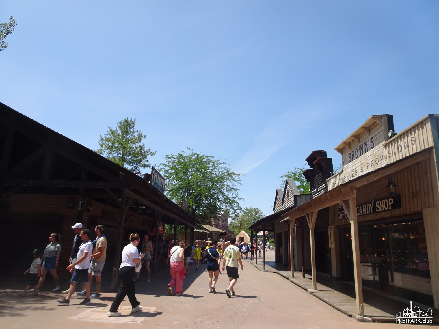 Onze ontbijtjes zijn weer goed door elkaar geschud en we zijn wakker. De eerste achtbanen van de dag zijn goed bevallen. Niet de beste B&M's die ik tot nu toe heb gedaan, zeker goeie achtbanen. Lunchen hoort er ook bij en dat gingen we eventjes doen. Lekker slenterend door het pretpark kwamen we aan in het wilde westen gebied. Beetje standaard thema in vele pretparken, vind het persoonlijk wel altijd leuke gebieden om doorheen te lopen. Paar weken geleden Slagharen bezocht voor het eerst en vond het ook goed en leuk eruit zien daar. Hier stond een achtbaan waar ik ook wel benieuwd naar was door de bekendere horrorverhalen ervan. Zou die écht zo erg zijn qua rammelen? Wachttijd gaaf 20 minuten aan, je kon er ook 20 personen van maken. Konden zo goed als meteen instappen. Operations waren hier niet zo snel. De andere trein stond al twee minuten te wachten buiten op de remsectie, lekker in de volle zon. Persoonlijk vond ik de rit niet slecht, beetje langdradig met lange stukken en ruime bochten. Qua rammelen vond ik hem zat meevallen, of zaten we op de juiste plek? Comfortabel zijn ze nooit en dat hoeft ook niet voor mij. Een houten achtbaan mag rammelen, mag een beetje oncomfortabel zijn, althans, binnen de grenzen. Die zijn voor iedereen verschillend.