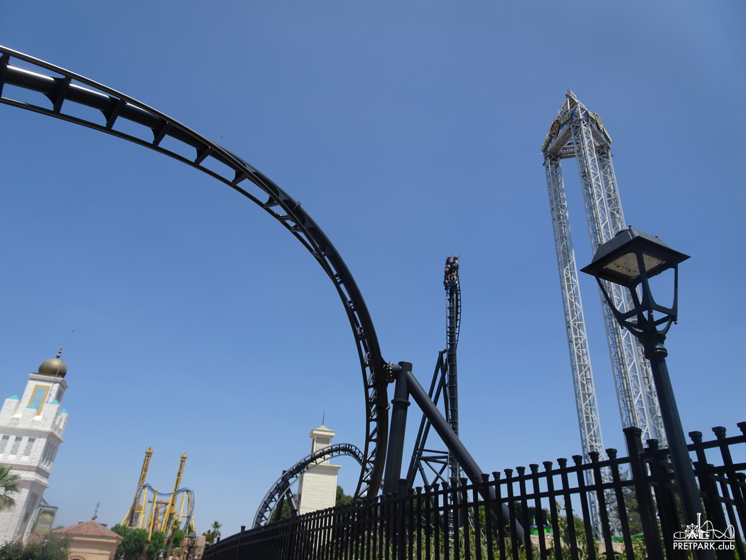 Onze reis was met de metro naar een bepaalde halte en via daar de bus opgestapt. Al met al een uur onderweg, maar gezien de kosten maakte ons dat niet uit. De rit voelde een beetje zoals naar Europa Park. Daar waas ik naar Europa Park op een gegeven moment naar de Silver Star zoek zocht ik hier naar de Stunt Fall of de Superman, de hoogste achtbanen van het park. Tot het moment dat Stuntfall opdook en de zin om het pretpark te bezoeken groeide en groeide. Eenmaal op de parking aangekomen zag het er enorm druk uit. Ook hier moesten we onze pasjes laten zien om een geldig toegangsticket te krijgen. Daarna kon de pret beginnen. Eerste indruk was dat alles schoon was, netjes aangelegd en voelde een beetje Amerikaans aan. Recht voor ons zag ik Batman Gotham City Escape, deze lieten we echter even links liggen omdat ik verwachte dat daar de menigte juist op af ging. Linksaf werd gekozen en beetje bij beetje kwam Stuntfall in zicht. Stuntfall was voor mij een beetje dé reden om Parque Warner te bezoeken, de giant inverted boomerang stond op het wensenlijstje om ooit een keer te doen. Ook deze sloegen we eventjes over. Hier ziet er ook alles netjes uit en is er goed gethematiseerd. Paden zijn schoon, netjes en verzorgd. Verderop zagen we één van de twee B&M's van het park die ook allebei werden beschreven in het boek Rollercoaster Giants. Vooral Superman Atracción de Acero was ik benieuwd naar. Ondanks de slechte ligging in het park (je ziet immers weinig van de layout), vond ik hem wel gaaf. Doet wat die moet doen qua snelheid, krachten en bochtenwerk. Beetje dezelfde elementen die B&M vaker gebruikt, maar als eerste achtbaan van de dag zeker een goede start. Vond hem alleen niet de soepelste. Geen harde tikken, maar gewoon, miste de souplesse die B&M kán hebben. Alsof die een beetje 'op' aan het gaan is. Vervolgens werd aan de 'buurman' ook een bezoekje gedaan. Shadows of Arkham is de welbekende kloon van de Batman inverteds die overal verspreid staan. Deze doet dus ook wat ze allemaal doen. Snel, krachtig, goede inversies, topbaan. Van mijn part goede vervanger van de Condor in Walibi. Als ook dat de Efteling zo'n achtbaantype goed kan gebruiken.