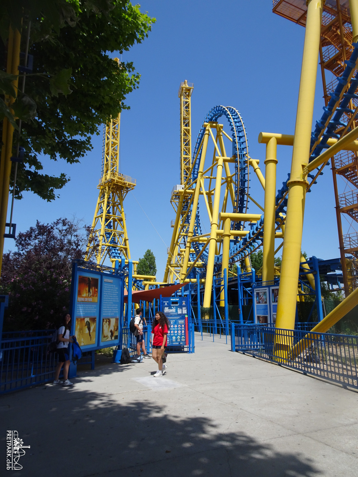 Nu werd het toch écht tijd om Batman Gotham City Escape te gaan doen. Ligt die in storing, heb ik weer..... Dan maar even wat gaan drinken en gaan zitten. Lang hoefde ik niet te wachten, binnen tien minuten ging die weer beginnen met testen. Advies was nog wel om nog niet aan te sluiten, de mevrouw kon niet zeggen wanneer deze weer open zou gaan. Eigenwijs als ik ben sloot ik toch aan. Een klein plekje in de schaduw was voldoen om niet onnodig in de zon te hoeven staan. Ook daar nog geen tien minuutjes gewacht en de entrée ging open. Qua aankleding prima gedaan met een kleine voorshow. Airco stond best wel koud en na de deur richting het station nóg kouder. Onprettig vond ik het wel een beetje, wetende dat kort erna in de achtbaan weer 30 graden zou zijn. Qua achtbaan vond ik deze wegl gaaf, maar bijvoorbeeld Taron en Maverick beter, de launchcoasters die ik heb gedaan die vergelijkbaar zijn. Gooi- en smijtwerk houd ik wel van, gecombineerd met lanceringen en inversies. Echter deze vind ik qua bochtenwerk niet altijd even goed, beetje apart af en toe. Lanceringen zijn wel goed, sterk genoeg. Tophat met rem erin prachtig gedaan en ook de zero-g-stall is een vet element. Kortom, goede en gave achtbaan, maar uiteindelijk niet mijn favoriete van het pretpark.