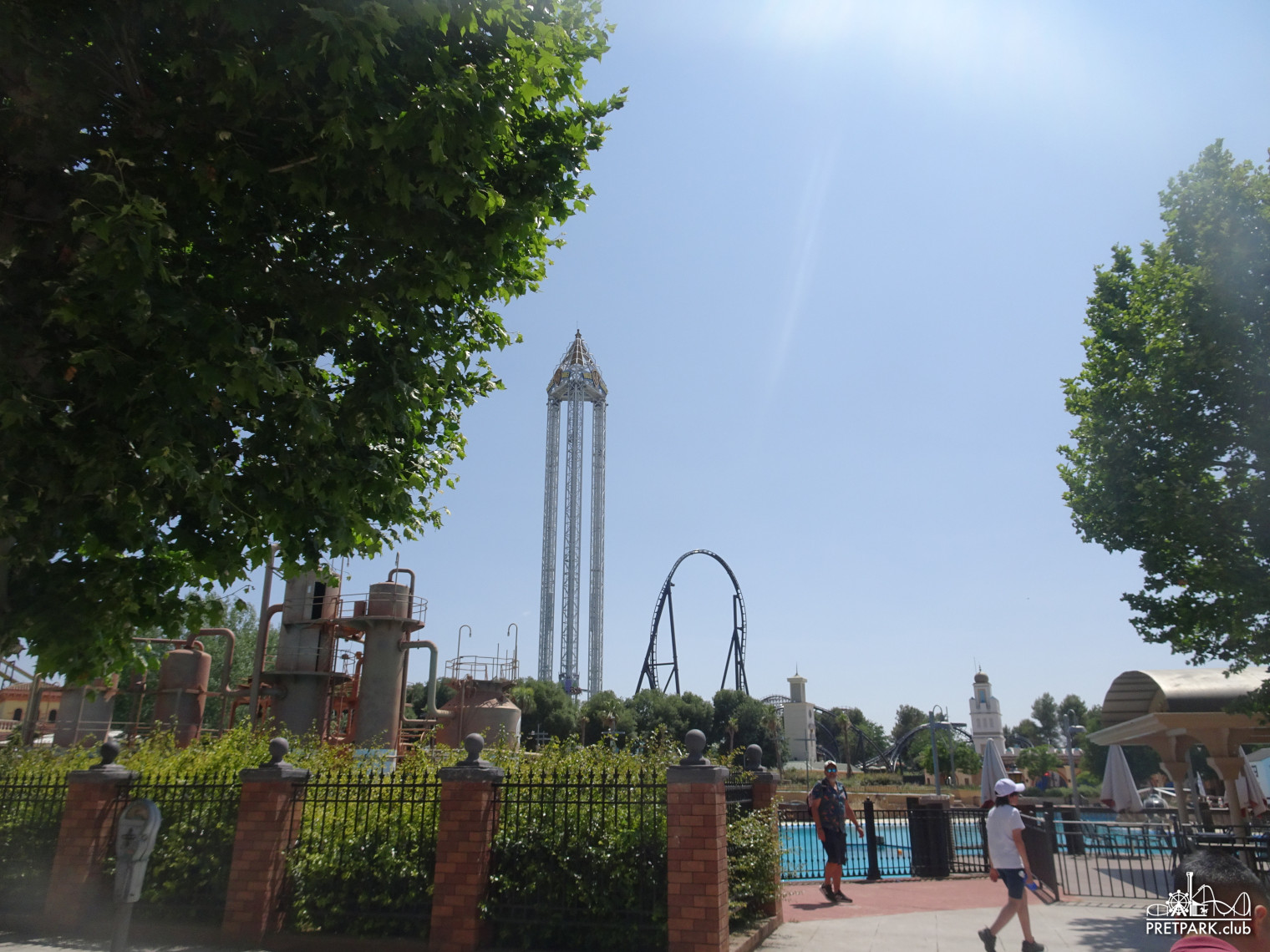 Tom y Jerry werd ook als tussendoortje gedaan. Groot genoeg om een keertje te doen, versta dit nog nét niet onder 'kiddie-coaster'. Lunchen deden we ook nog in het westerngedeelte met een lekkere pasta. Uiteindelijk gingen we naar de laatste achtbaan die ik nog moest doen. Totaal niet goed gekeken dat er ergens nog een achtbaan stond. Geeft niks, bingo is niet belangrijk voor me, had ik maar beter moeten opletten. Stuntfall hadden we al vaker gezien, het moest er een keertje van komen, de wachtrij gaan betreden. Hier ook een erg korte wachtrij en ik kon zo goed als meteen frontseat instappen. Wat volgde was een erg gave rit. De val vooruit naar beneden wordt goed qua spanning opgebouwd en kost wat vertrouwen hebben in je beugels. Ook hier verwachte ik een rit die niet echt comfortabel was, maar ook hier vond ik het genoeg meevallen (zat wel aan de buitenkant). De val verticaal achteruit vond ik ook erg gaaf. Voor mij de beste achtbaan van het park, gevolgd door de twee B&M's en dan Batman Gotham City Escape.