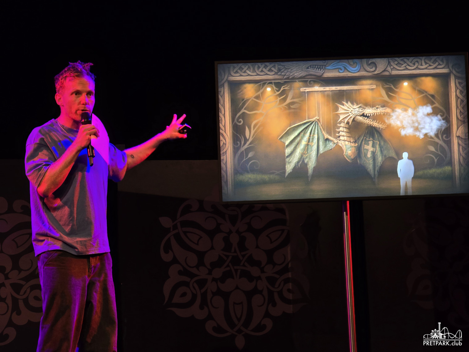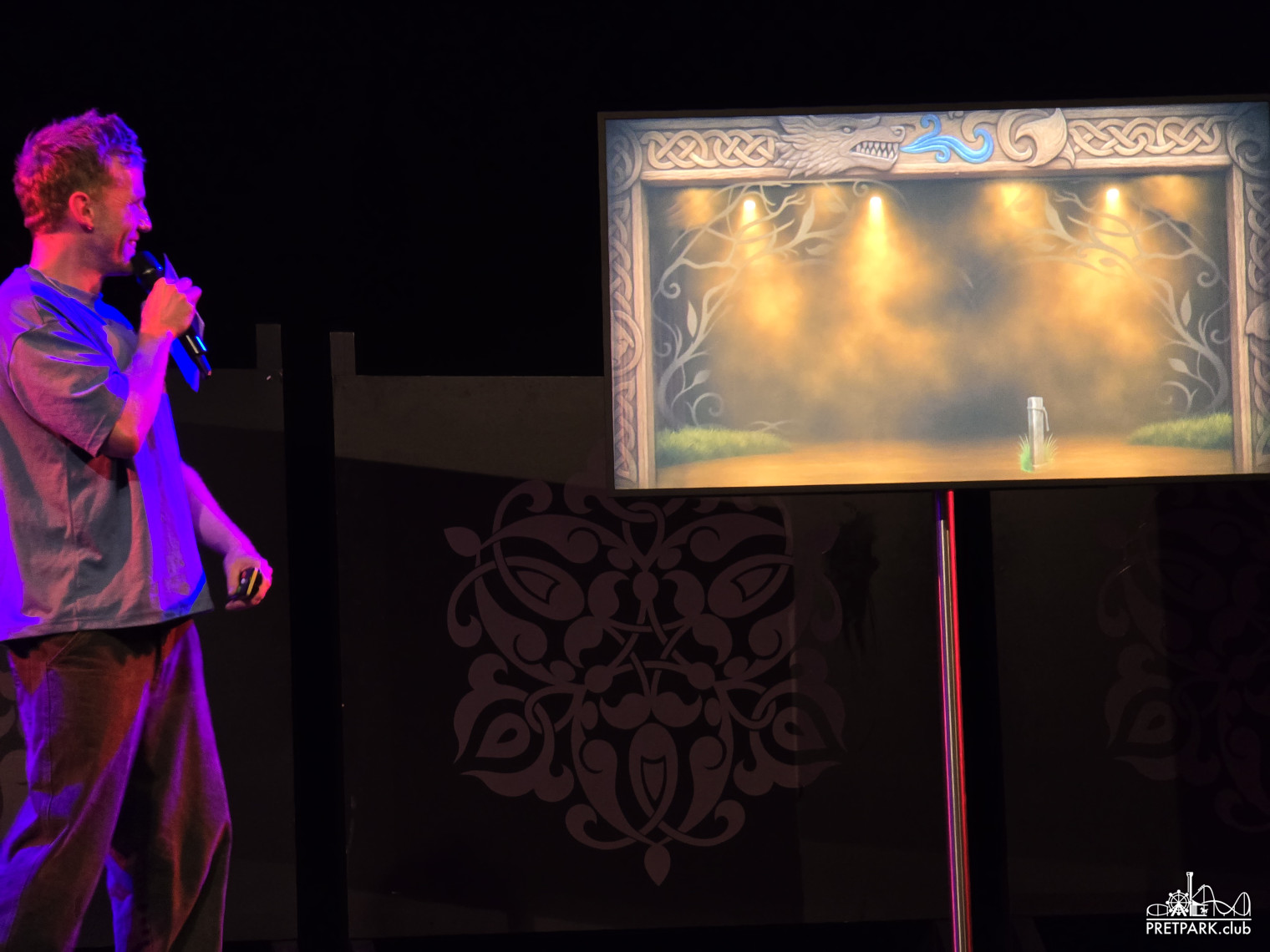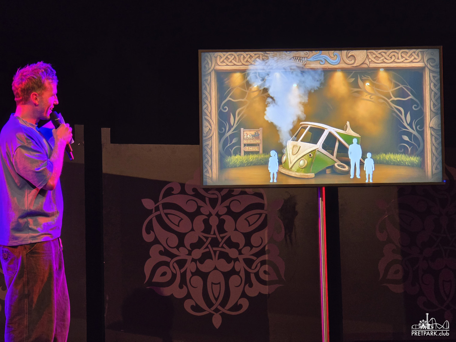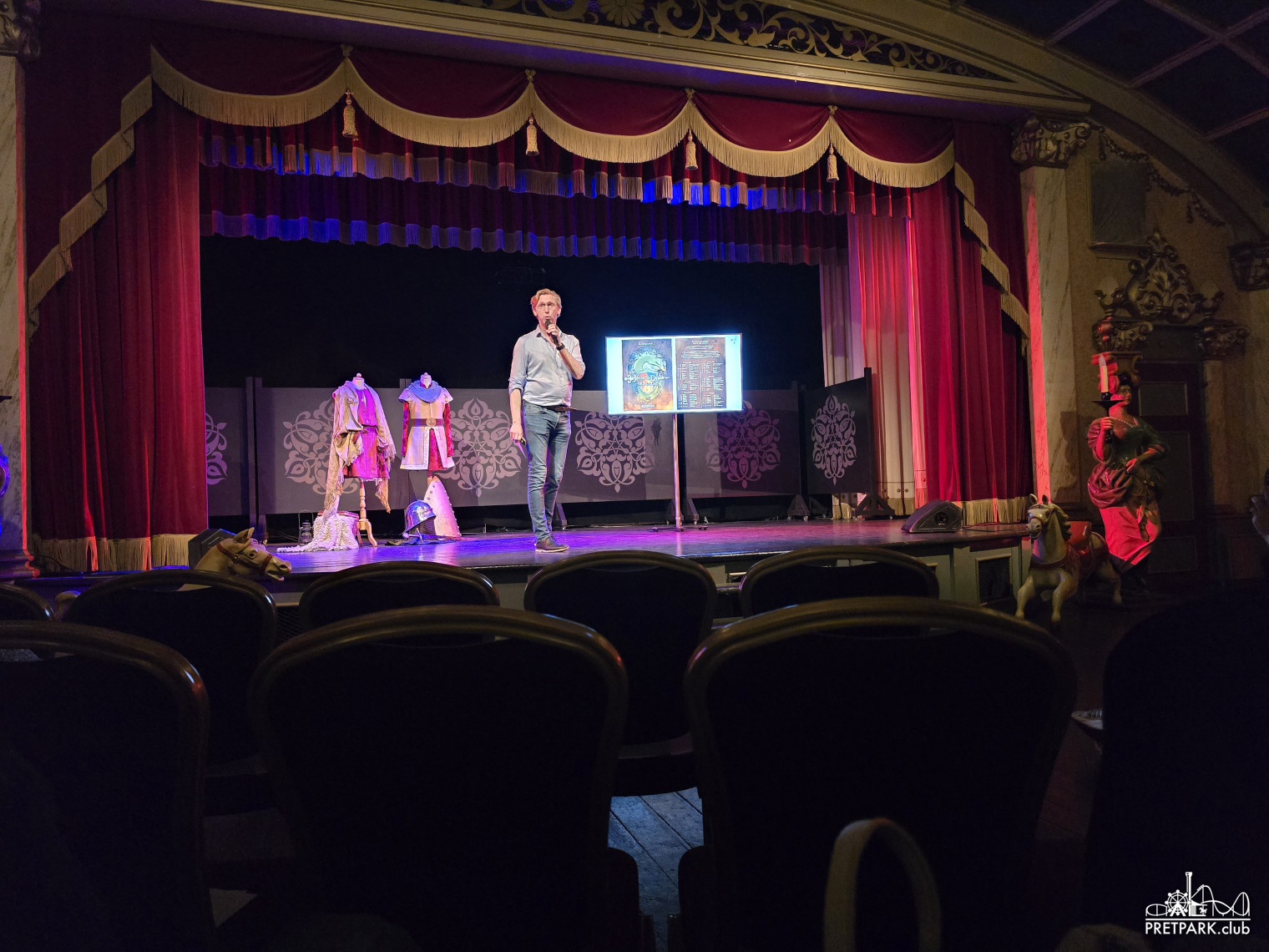 Tegen het einde van de middag werden we ontvangen in het Carrouseltheater waar om 17:00 de presentatie begon. Mark van Haasteren, Creatief Concept Specialist Live Entertainment, beet het spits af. In het verleden heeft hij onder andere al gewerkt aan De Gelaarsde Kat, Jokie & Jet en Sprookjessprokkelaar musicals. Daarna kregen we nog een korte video te zien waarin fragmenten van de eigen Efteling theater producties voorbij kwamen.