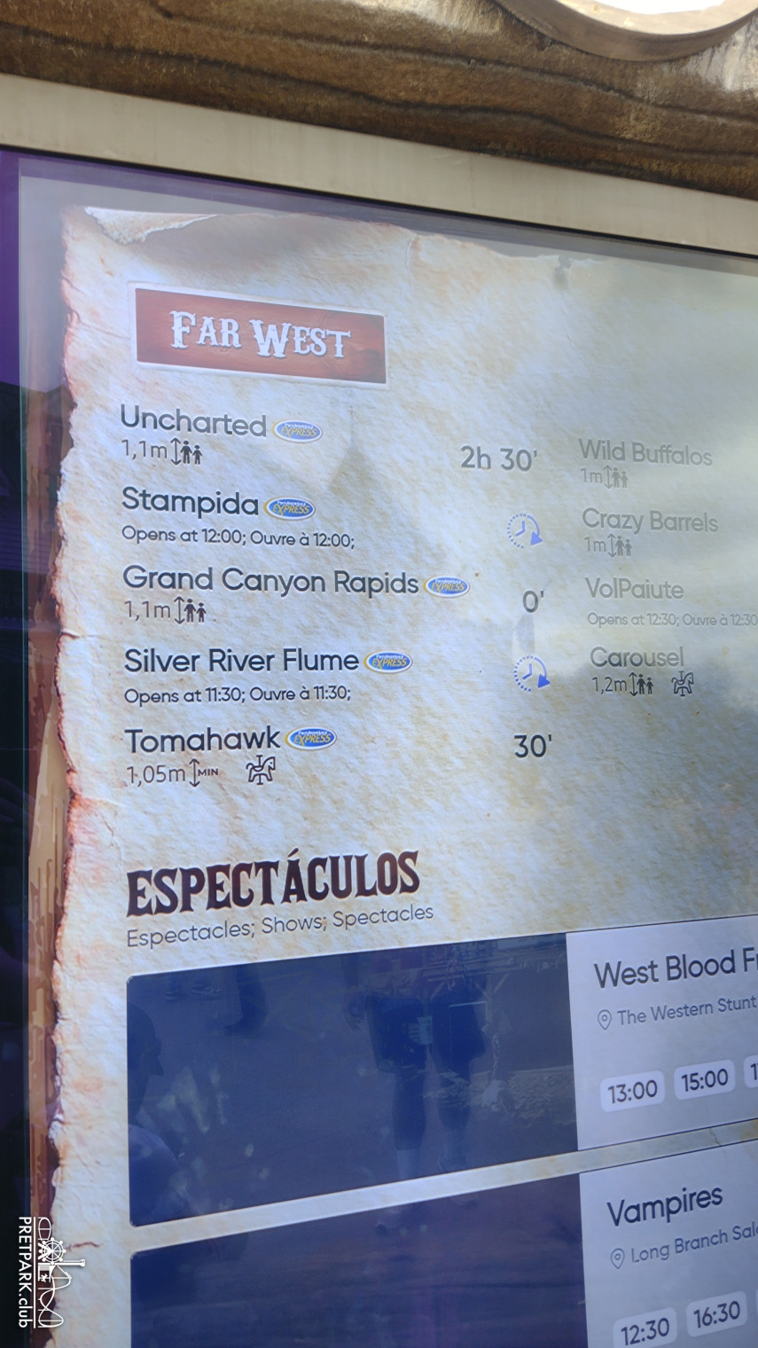 Ik heb gelezen dat het park last heeft van slechte operations. Lange rijen, inefficiënt personeel, veel focus op voordringpassen. Gelukkig is het vandaag niet heel druk en het park maakt een betere indruk dan verwacht. En het ligt er mooi bij! Ik vind het wel onhandig dat een deel van de attracties later opent en dat er bij Uncharted al een rij van 2,5 uur staat bij opening… Gasten van sommige hotels mogen eerder naar binnen, maar dat geldt volgens mij niet voor El Paso. Al weet ik dat eerlijk gezegd niet zeker. Er is in het hotel in ieder geval niets over te vinden.