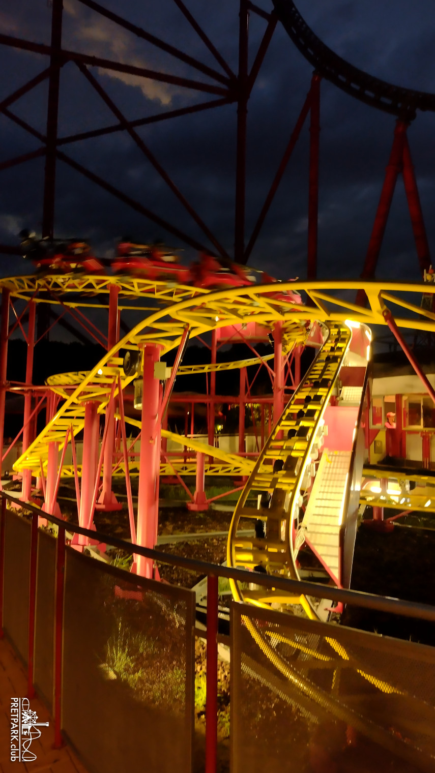 Ik ga nog weer terug naar de parken, want ik heb ook toegang tot Ferrariland. Dat park ging pas om 17 uur open en toen regende het nog. Red Force deed het daarom niet, maar inmiddels is het opgedroogd en ik ben precies op tijd voor de heropening van Red Force. Toch wel heel tof om in het donker dit mee te maken! Ik zit helemaal voorin, ik krijg zelfs een speciaal brilletje op en dat is wel prettig tegen de wind die met deze snelheden in je gezicht blaast.