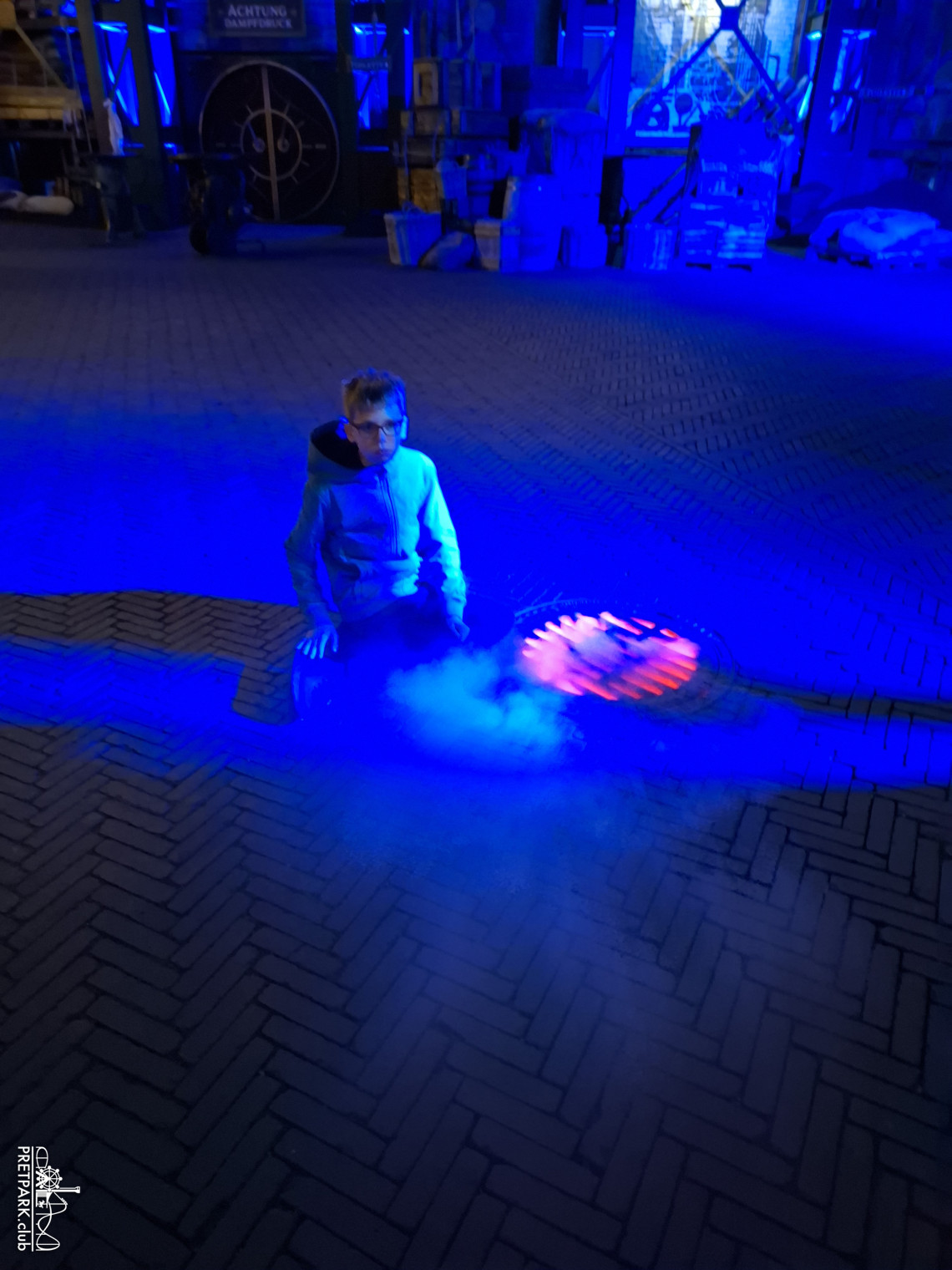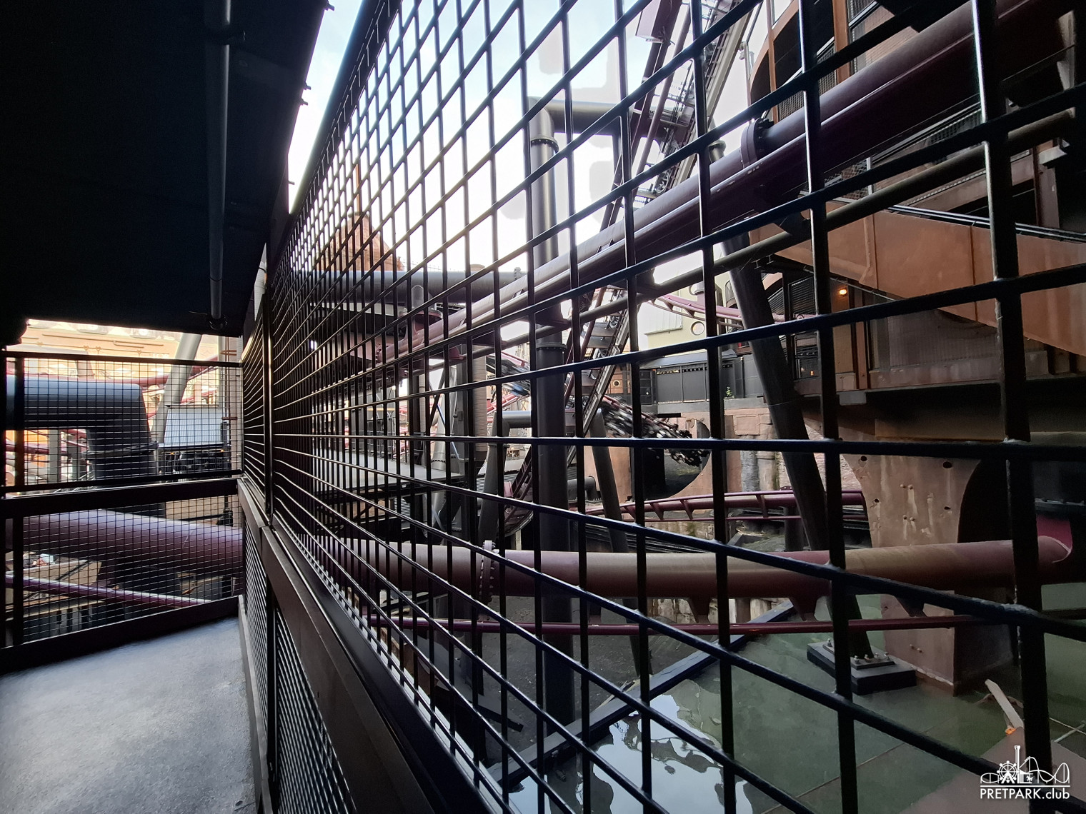 Daarna de coaster in: waar er 25 minuten wachttijd op het bordje stond, zaten we in 10 minuten met onze VR-brillen op in de langste indoorcoaster van Europa. Ik had deze baan eerder bereden als “Temple of the Nighthawk”, en in coronatijd zonder thematisatie. Maar de VR maakt de toch tamme, net iets te lange baan voor mij en Cas echt de moeite waard.