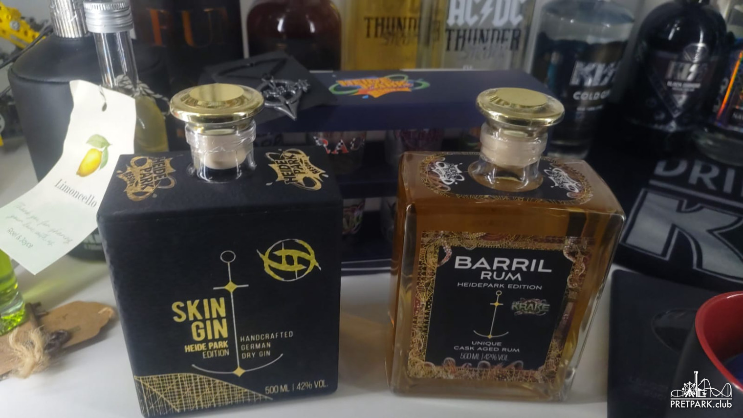 Iets minder oud zijn de (ongeopende) flessen Krake-Rum en Colossos-Gin van Heide park. Wat ouder is het hangertje van Scream. Niet zichtbaar op de foto (want staat elders): Is ook de typische asbak van Heide Park in de vorm van een rapid-river bootje.