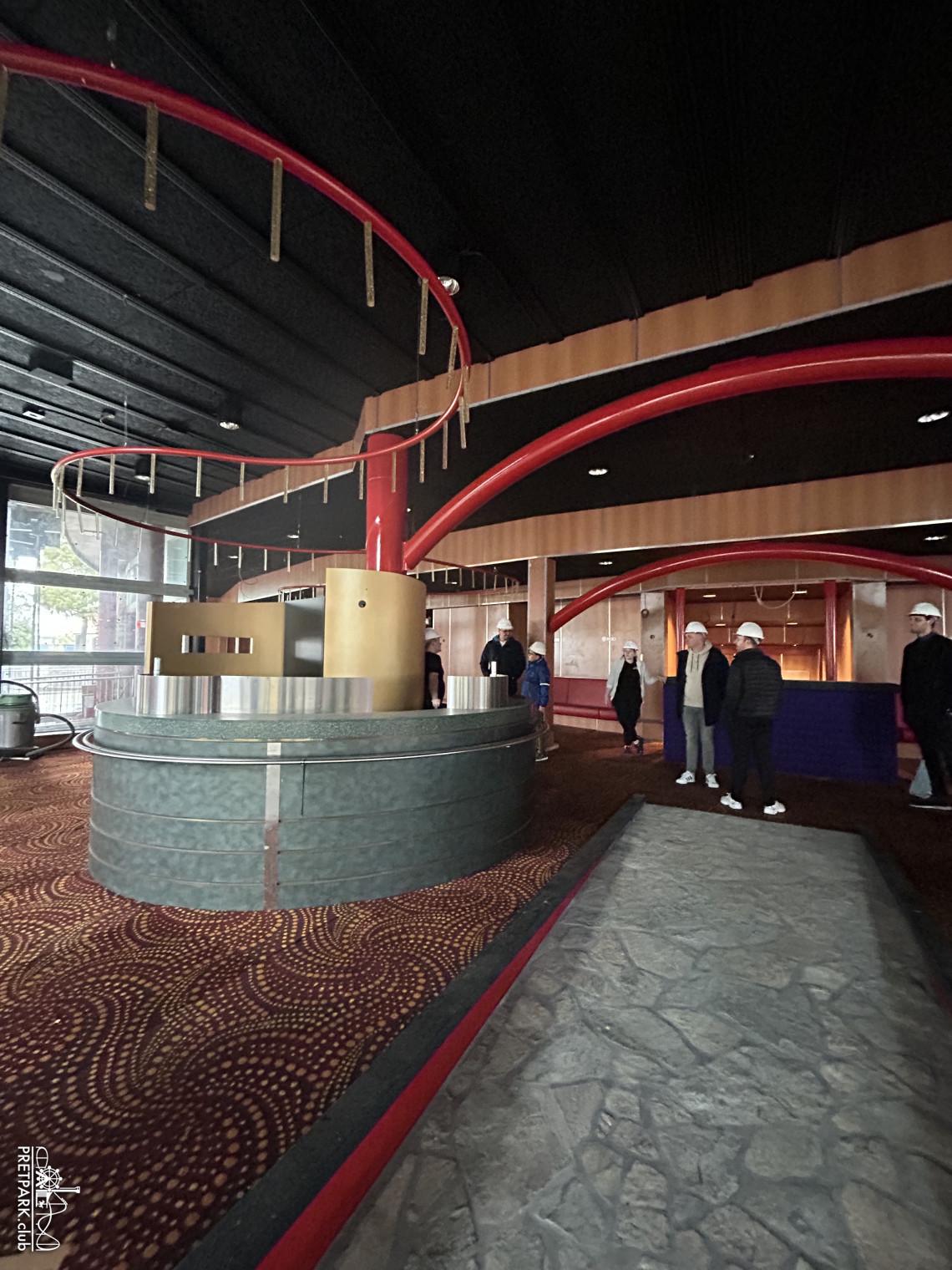 Wat mij wellicht nog het meest verbaasde, was dat werkelijk alles hergebruikt is. Ik was ergens in de veronderstelling dat de attracties en wellicht het podium en een verdwaald decorstuk hergebruikt waren. Maar roltrappen, deuren, balies, bestrating, plantenbakken, alles komt wel ergens vandaan. Dit resulteert in een roltrap bij de ingang, waarna je vervolgens weer twee treden omlaag moet lopen, in inmiddels afgeragde vloerbedekking (die zijn beste tijd denk ik al had gehad in t casino waar 't vandaan kwam) en overal een gedateerd gevoel. Het voelt heel erg 2005 aan.